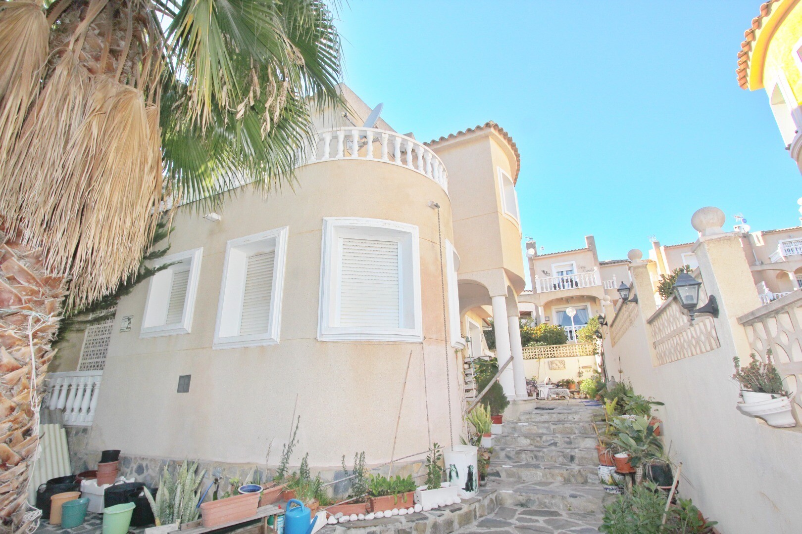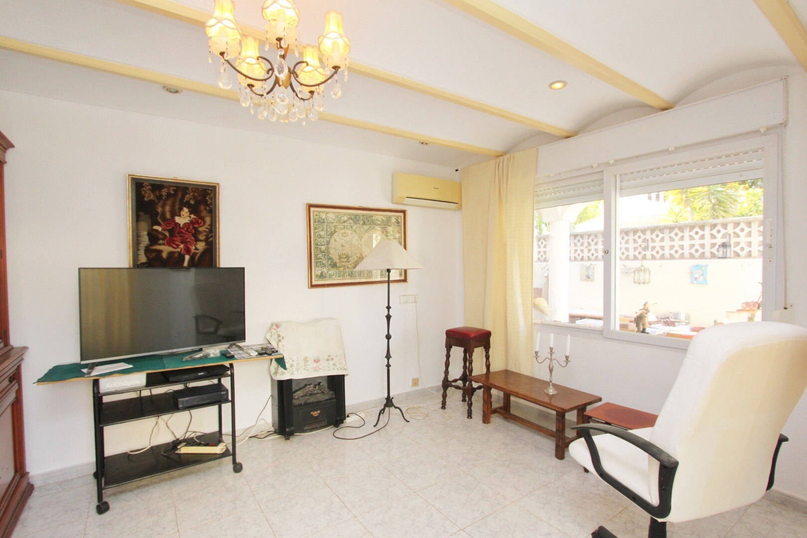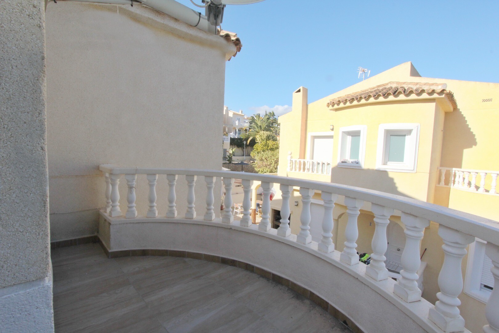Sublokuota vila, kurią reikia renovuoti, yra nedidelėje 13 namų bendrijoje. Į turtą patenkama pro elektroniniu būdu valdomus vartus, kurie veda į parkavimo aikštelę 1 automobiliui, motociklui, keturračiui ir kt. Namo vidus paskirstytas taip: svečių tualetas, virtuvė-valgomasis, svetainė ir sandėliukas. Viršuje: pagrindinis miegamasis su didele tera...sa į pietus, svečių miegamasis su terasa ir vonios kambarys. Yra graži lauko veranda ir kepsninė. Bendruomenės baseinas ir poilsio zona. Namui reikia renovacijos ir tai atsispindi žemoje kainoje!