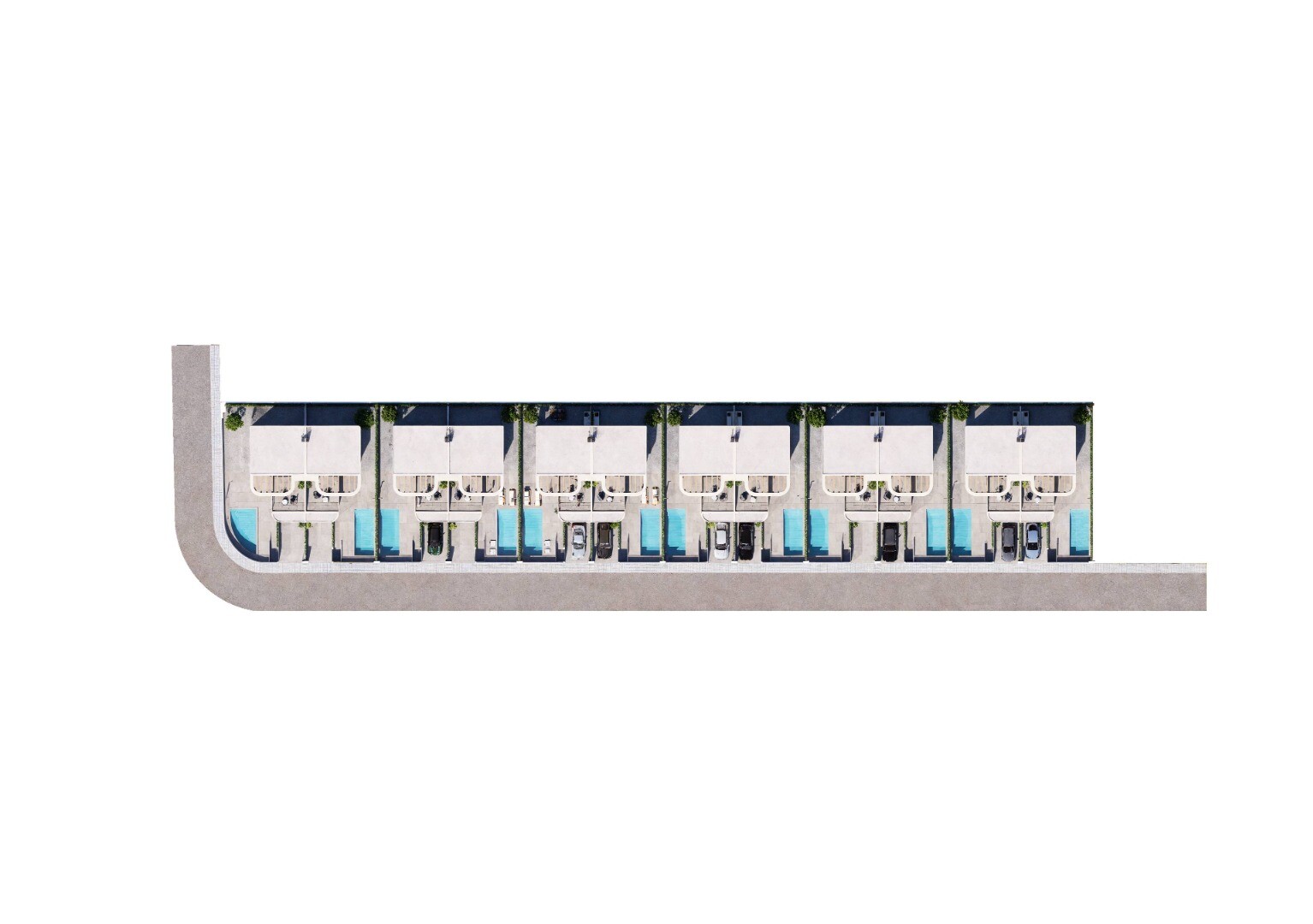 12 dviejų aukštų vilų Daya Nueva rajone su 3 miegamaisiais ir 2 vonios kambariais, vienas iš jų su rūbine, statyba maždaug 195 m² sklype. Namai pristatomi su pilnai įrengtais vonios kambariais ir iš anksto įrengta oro kondicionavimo sistema per ortakius. Juose taip pat yra 3 saulės baterijos. 15 m² ploto baseiną galima įsigyti už 19 900 eurų.