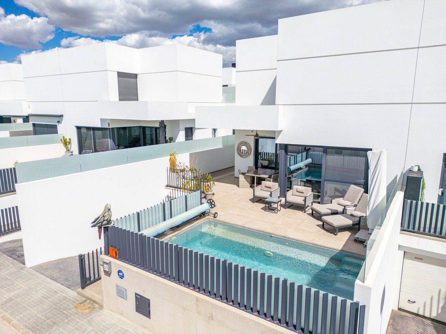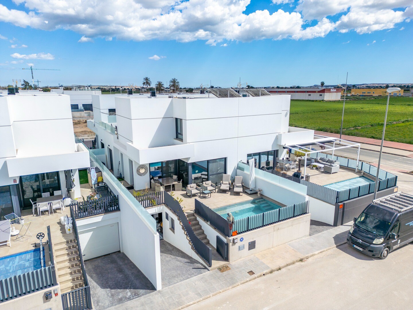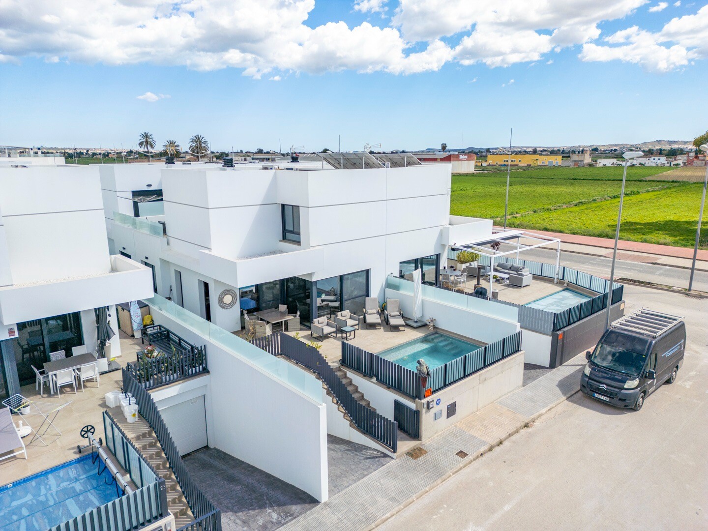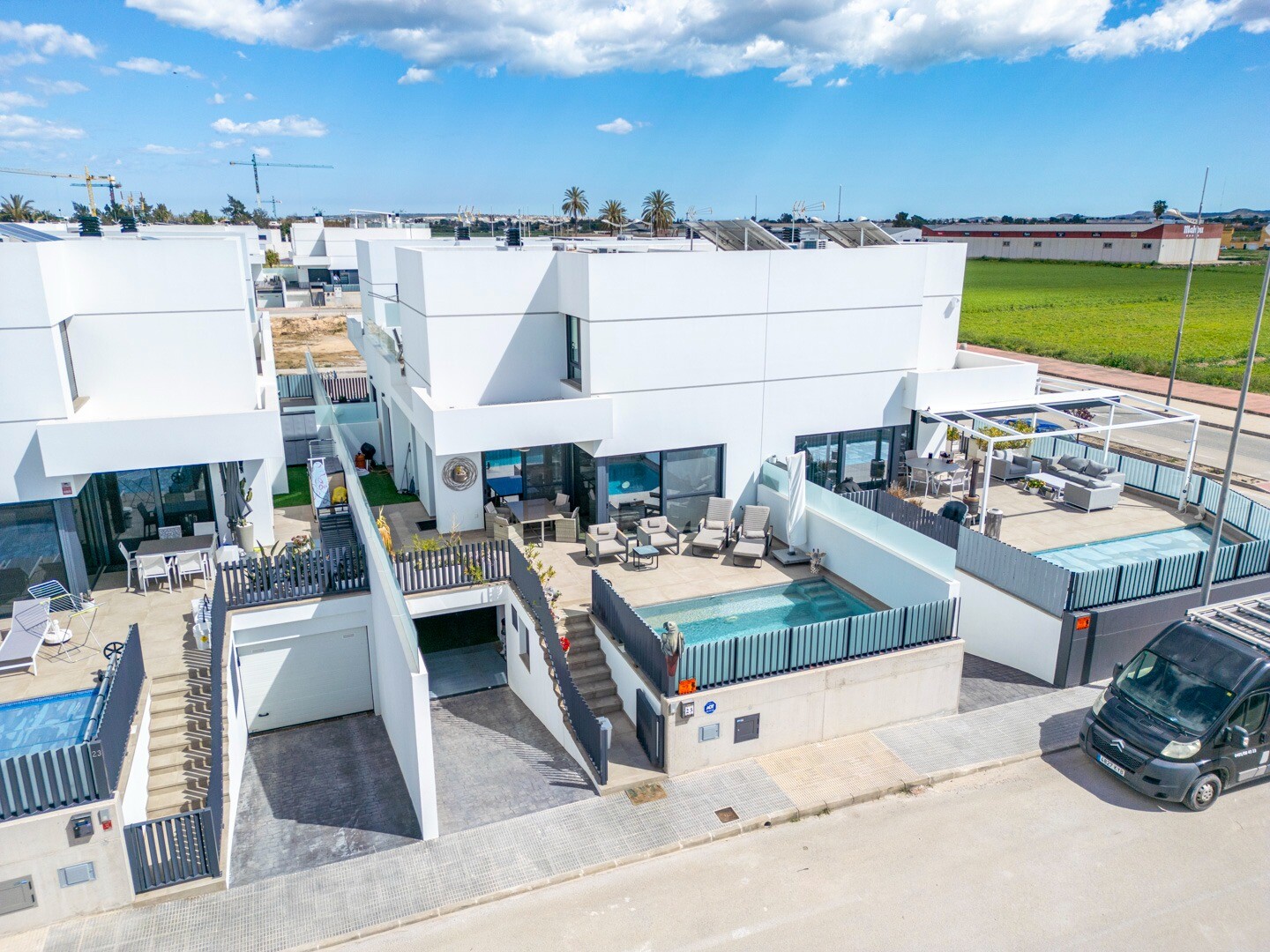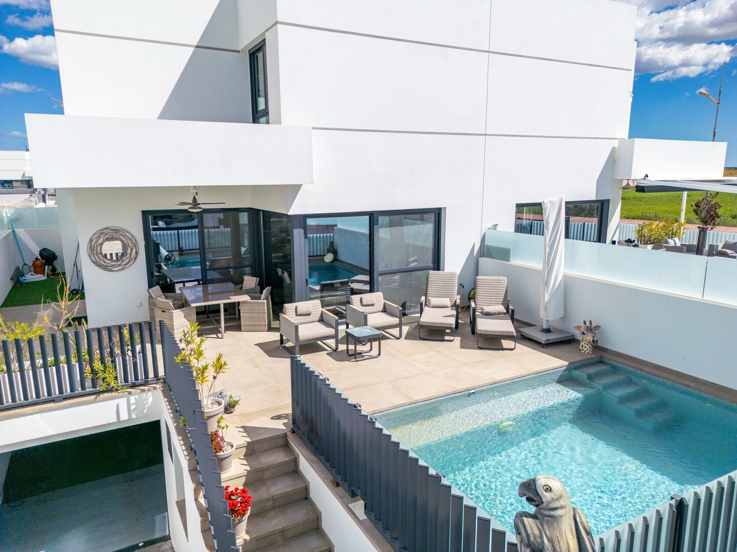 Graži nauja sublokuota vila su šildomu baseinu ir stogo terasa Dolores mieste. Dabartinis savininkas jį netgi pavertė sūraus vandens baseinu. Vila pastatyta 2023 m. kovo mėnesį ir yra aprūpinta visomis įmanomomis prabangomis. Pasirinktos prabangios medžiagos ir namas yra paruoštas iš karto įsikelti. Su šviesia svetaine, gražia atvira virtuve ir mie...gamuoju pirmame aukšte su persirengimo kambariu ir vonios kambariu bei atskiru svečių tualetu (gana unikalus Ispanijoje). Su didele rūsio erdve po namu, kurią galima panaudoti įvairioms kitoms reikmėms, šis namas turi daug erdvės ir prabangos. Namas yra naujame gyvenamajame rajone, kuriame dar statomi keli namai, tačiau šio namo nereikia laukti metų. 15 km ilgio auksinio smėlio paplūdimius Guardamar del Segura galima pasiekti maždaug per 20 minučių. Alikantės ir Mursijos – Korveros oro uostus galima pasiekti atitinkamai maždaug per 30 minučių iš Alikantės ir maždaug per 45 minutes iš Mursijos-Korveros.