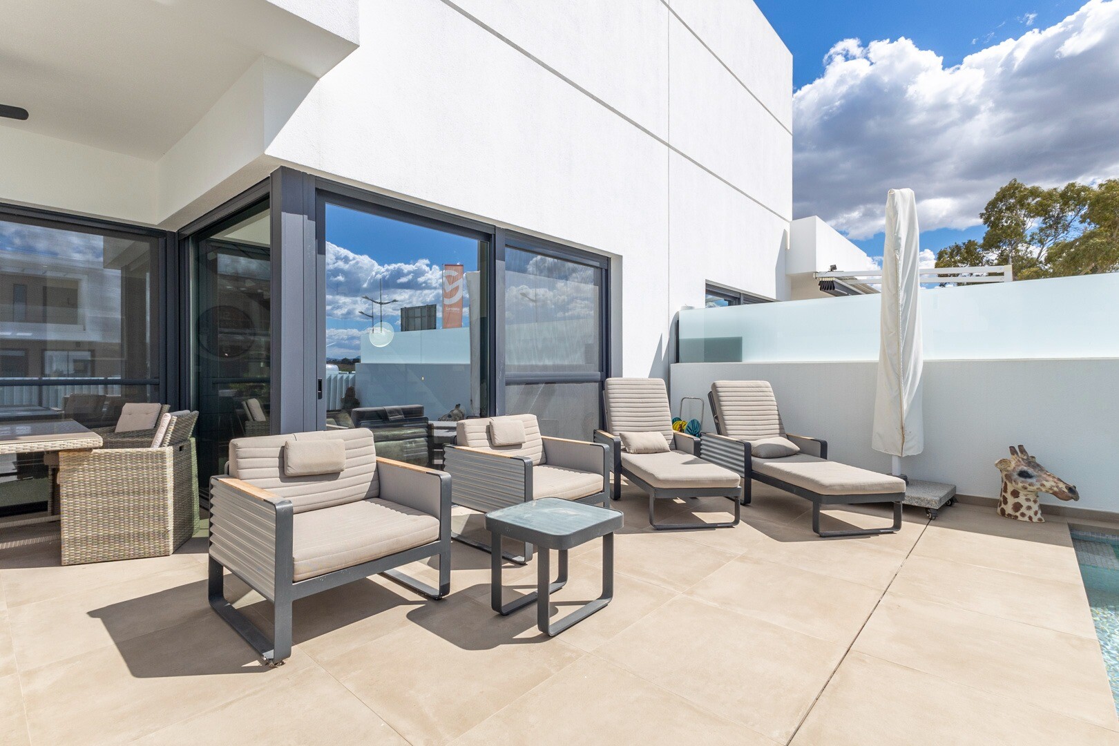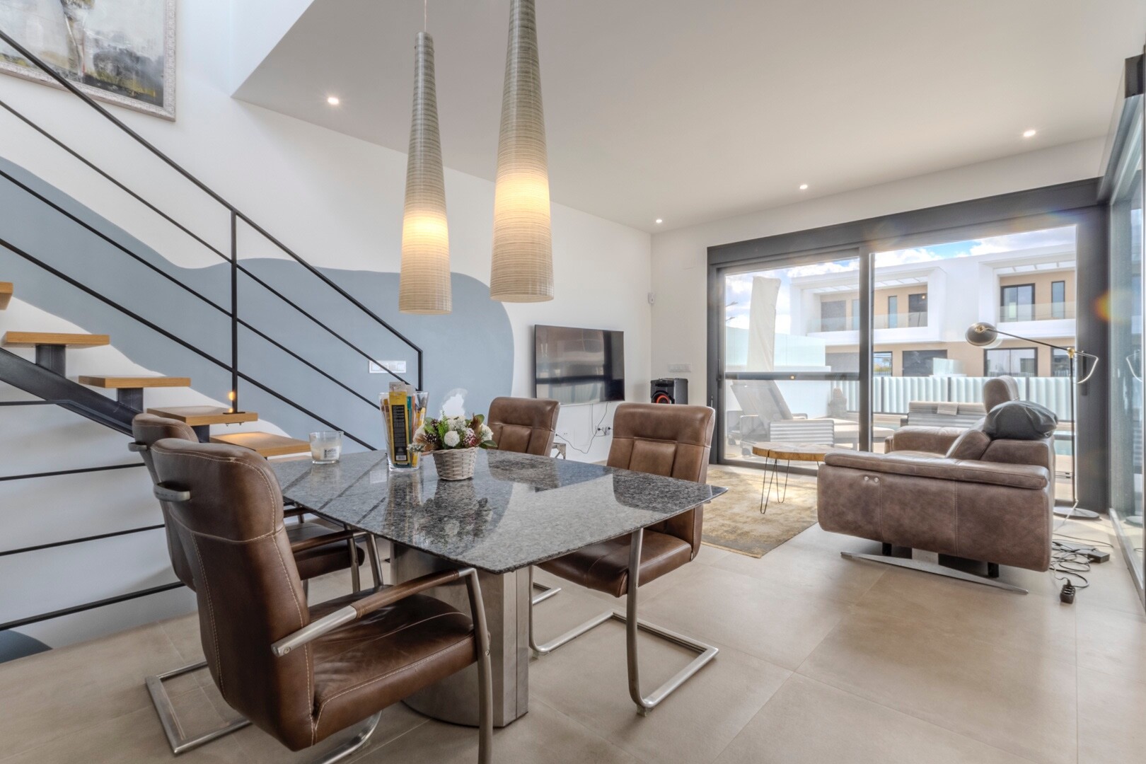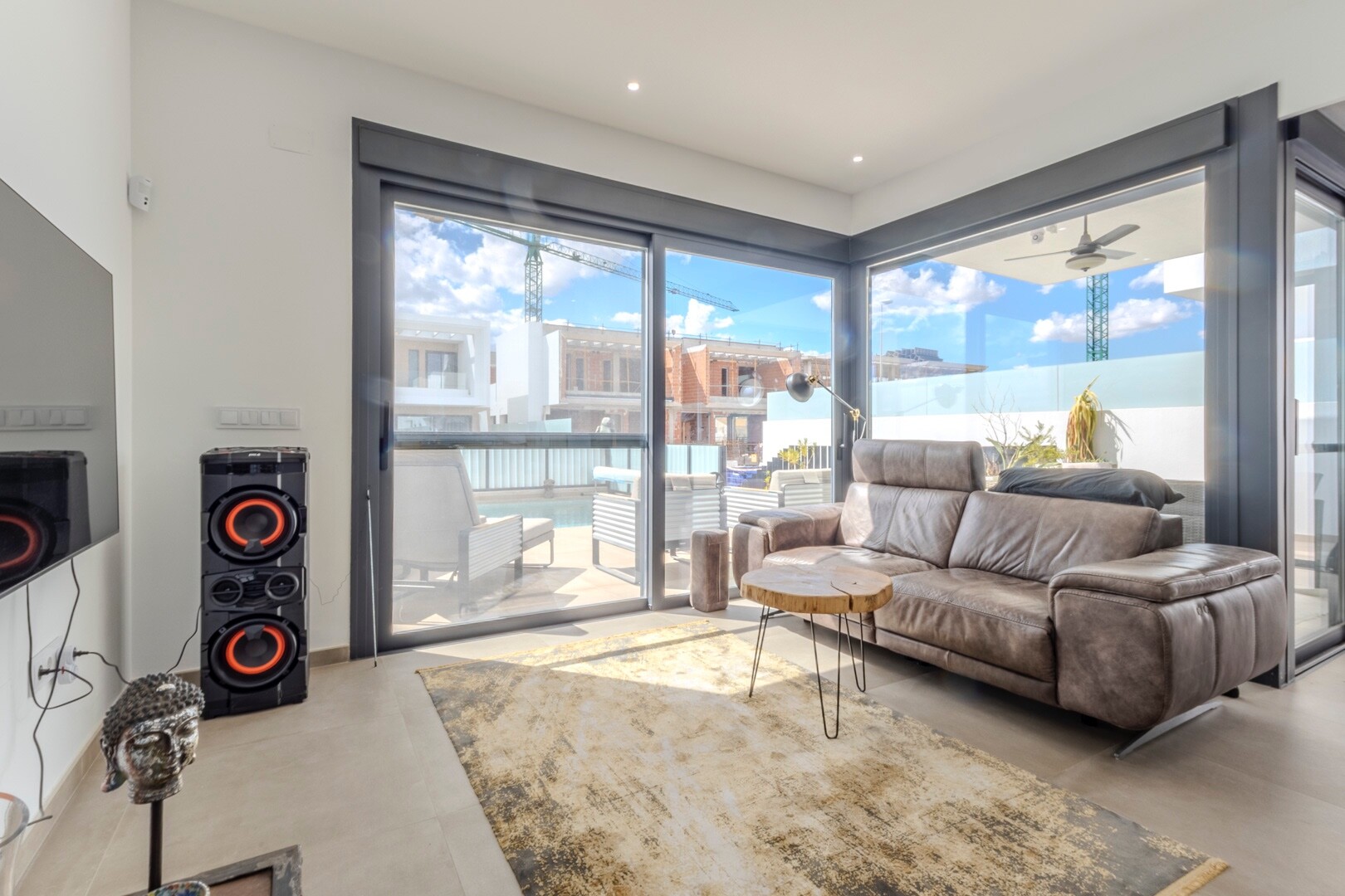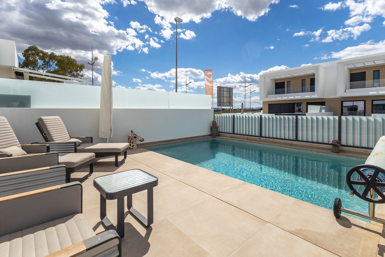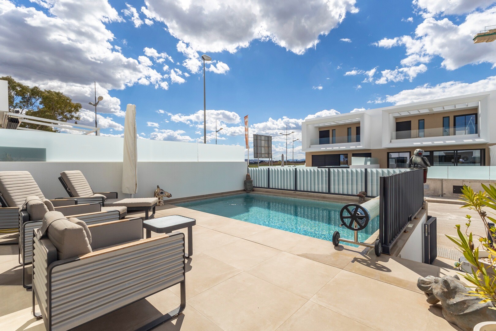 Graži nauja sublokuota vila su šildomu baseinu ir stogo terasa Dolores mieste. Dabartinis savininkas jį netgi pavertė sūraus vandens baseinu. Vila pastatyta 2023 m. kovo mėnesį ir yra aprūpinta visomis įmanomomis prabangomis. Pasirinktos prabangios medžiagos ir namas yra paruoštas iš karto įsikelti. Su šviesia svetaine, gražia atvira virtuve ir mie...gamuoju pirmame aukšte su persirengimo kambariu ir vonios kambariu bei atskiru svečių tualetu (gana unikalus Ispanijoje). Su didele rūsio erdve po namu, kurią galima panaudoti įvairioms kitoms reikmėms, šis namas turi daug erdvės ir prabangos. Namas yra naujame gyvenamajame rajone, kuriame dar statomi keli namai, tačiau šio namo nereikia laukti metų. 15 km ilgio auksinio smėlio paplūdimius Guardamar del Segura galima pasiekti maždaug per 20 minučių. Alikantės ir Mursijos – Korveros oro uostus galima pasiekti atitinkamai maždaug per 30 minučių iš Alikantės ir maždaug per 45 minutes iš Mursijos-Korveros.