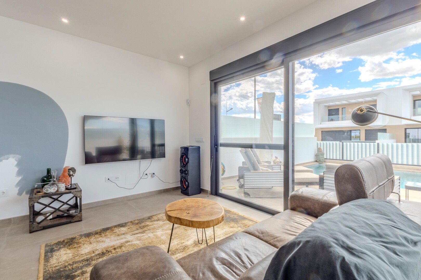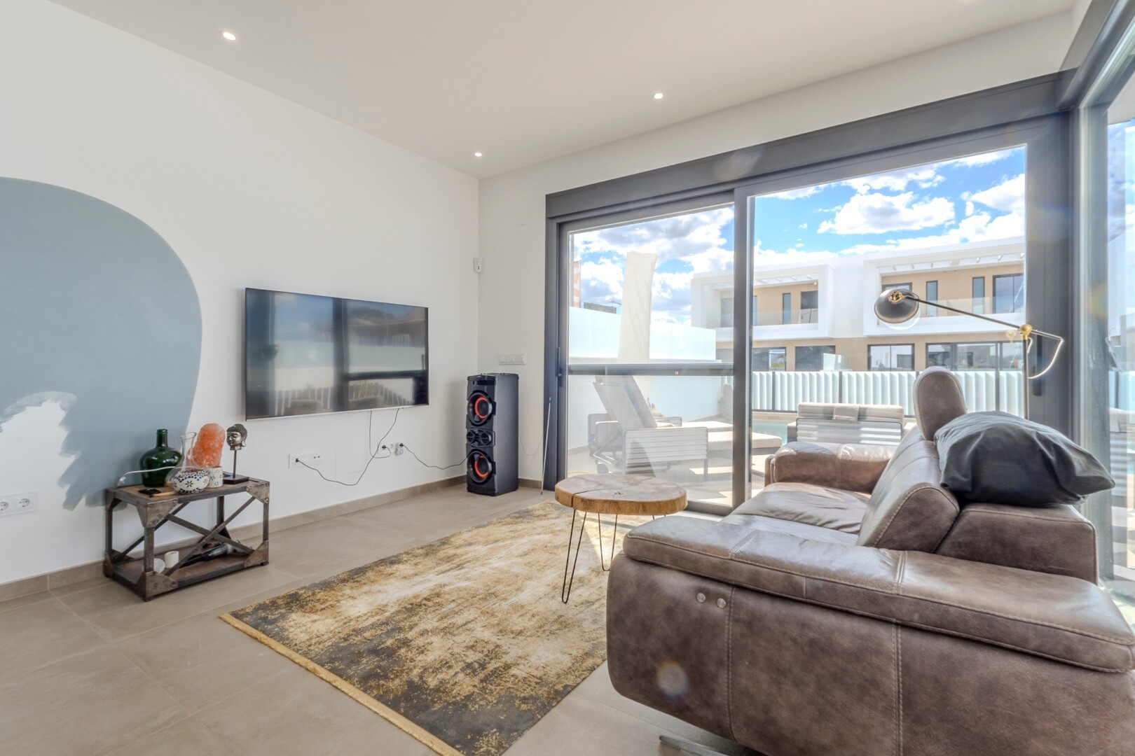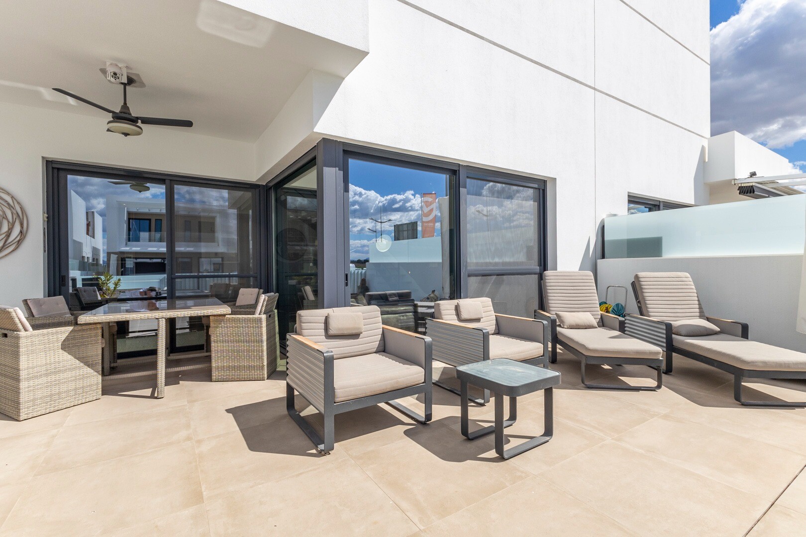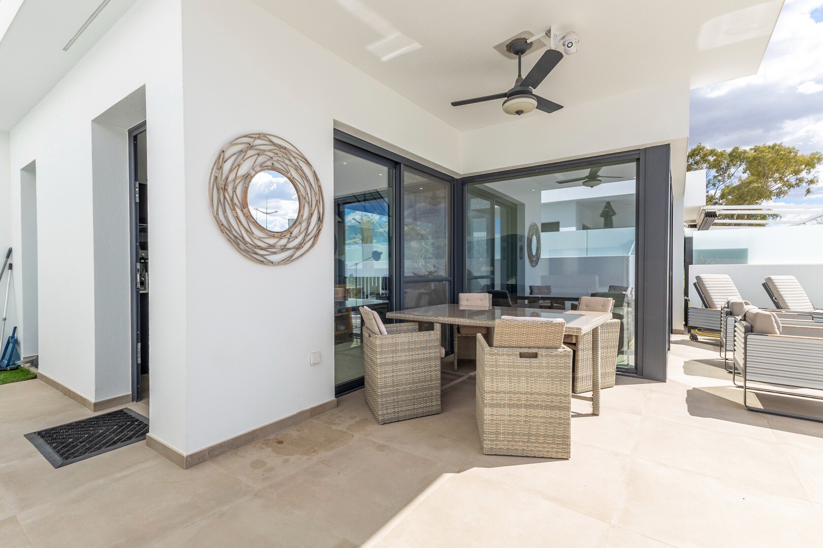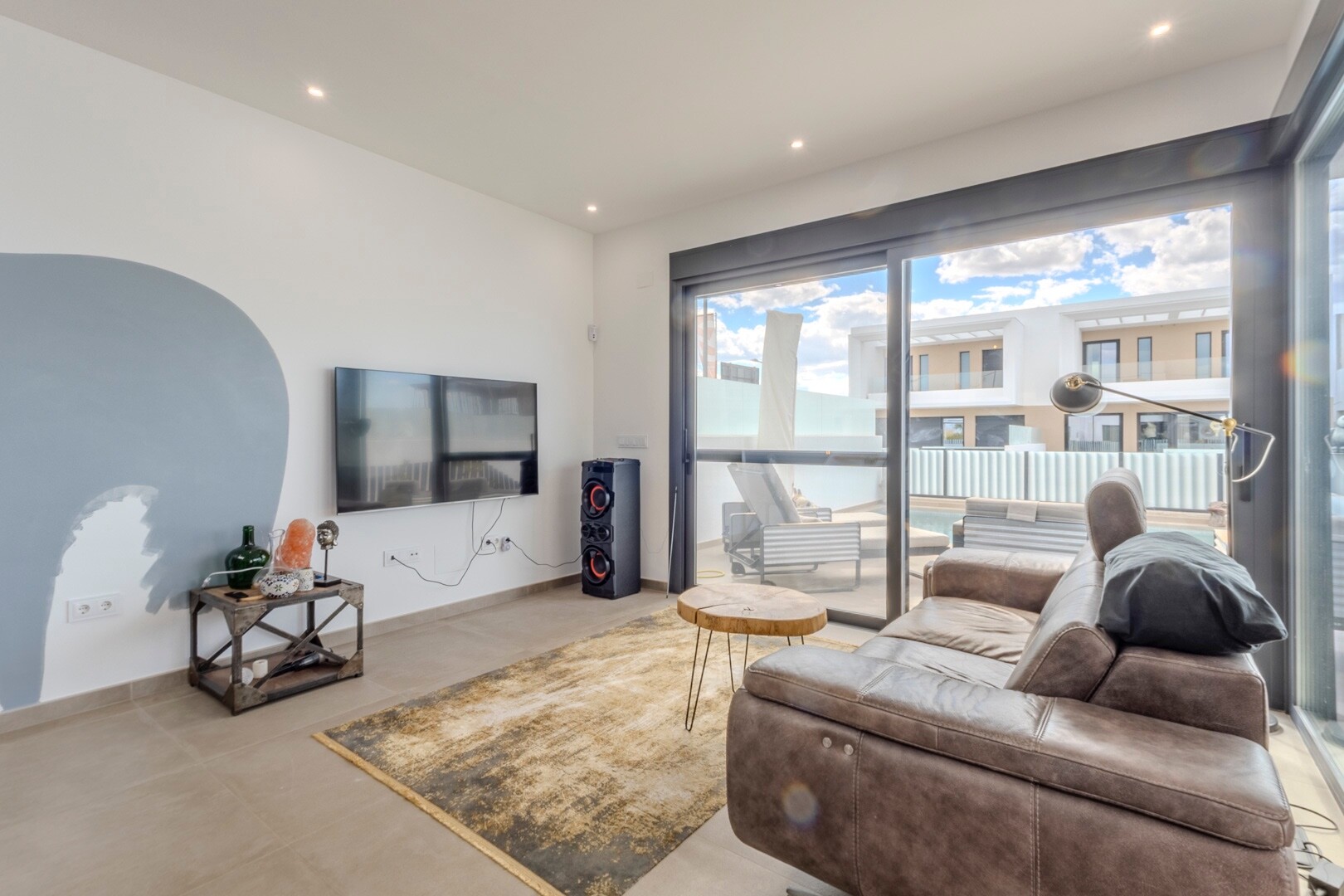 Graži nauja sublokuota vila su šildomu baseinu ir stogo terasa Dolores mieste. Dabartinis savininkas jį netgi pavertė sūraus vandens baseinu. Vila pastatyta 2023 m. kovo mėnesį ir yra aprūpinta visomis įmanomomis prabangomis. Pasirinktos prabangios medžiagos ir namas yra paruoštas iš karto įsikelti. Su šviesia svetaine, gražia atvira virtuve ir mie...gamuoju pirmame aukšte su persirengimo kambariu ir vonios kambariu bei atskiru svečių tualetu (gana unikalus Ispanijoje). Su didele rūsio erdve po namu, kurią galima panaudoti įvairioms kitoms reikmėms, šis namas turi daug erdvės ir prabangos. Namas yra naujame gyvenamajame rajone, kuriame dar statomi keli namai, tačiau šio namo nereikia laukti metų. 15 km ilgio auksinio smėlio paplūdimius Guardamar del Segura galima pasiekti maždaug per 20 minučių. Alikantės ir Mursijos – Korveros oro uostus galima pasiekti atitinkamai maždaug per 30 minučių iš Alikantės ir maždaug per 45 minutes iš Mursijos-Korveros.