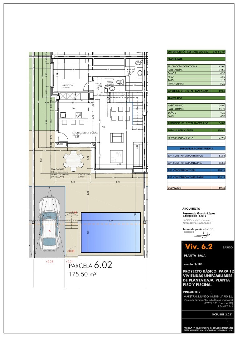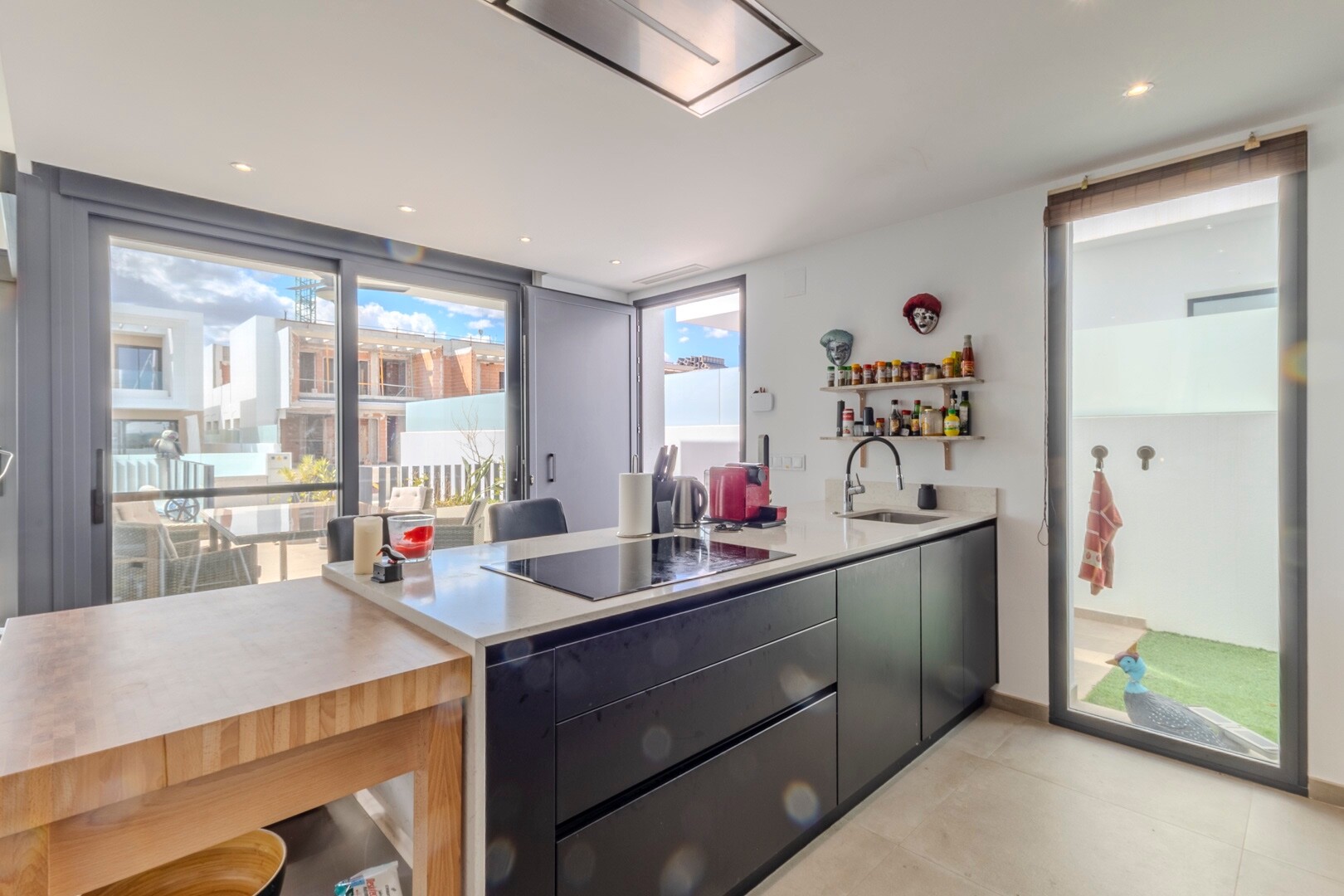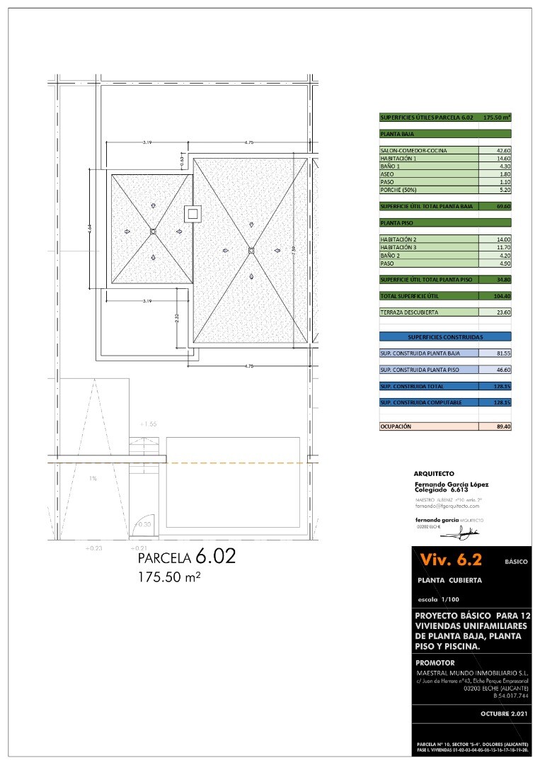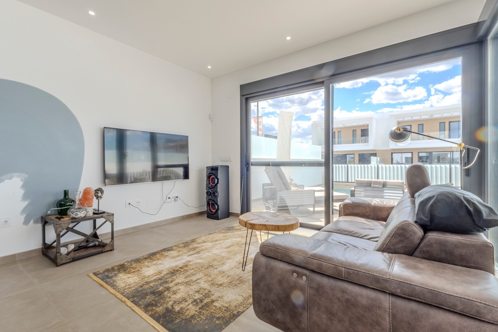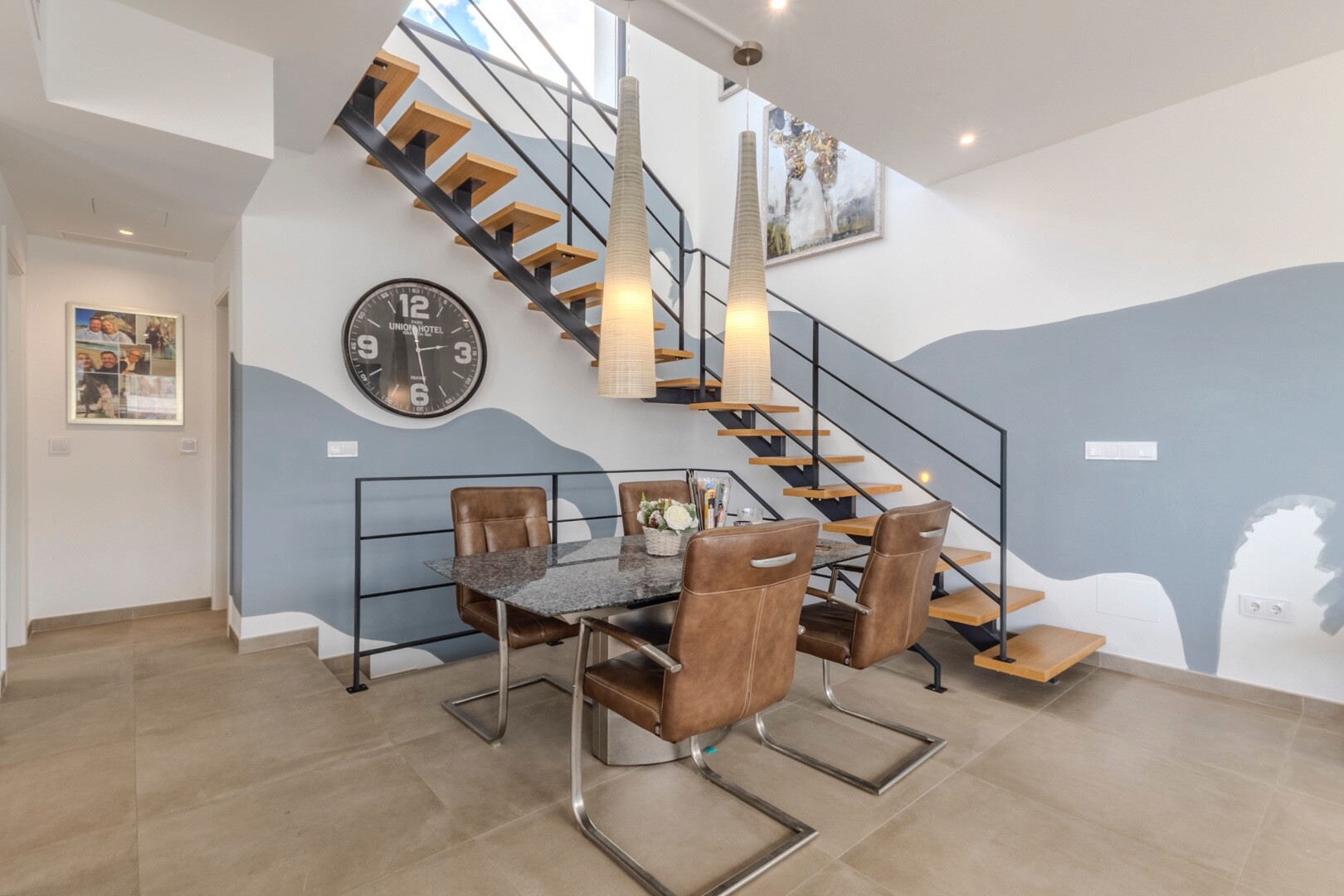 Graži nauja sublokuota vila su šildomu baseinu ir stogo terasa Dolores mieste. Dabartinis savininkas jį netgi pavertė sūraus vandens baseinu. Vila pastatyta 2023 m. kovo mėnesį ir yra aprūpinta visomis įmanomomis prabangomis. Pasirinktos prabangios medžiagos ir namas yra paruoštas iš karto įsikelti. Su šviesia svetaine, gražia atvira virtuve ir mie...gamuoju pirmame aukšte su persirengimo kambariu ir vonios kambariu bei atskiru svečių tualetu (gana unikalus Ispanijoje). Su didele rūsio erdve po namu, kurią galima panaudoti įvairioms kitoms reikmėms, šis namas turi daug erdvės ir prabangos. Namas yra naujame gyvenamajame rajone, kuriame dar statomi keli namai, tačiau šio namo nereikia laukti metų. 15 km ilgio auksinio smėlio paplūdimius Guardamar del Segura galima pasiekti maždaug per 20 minučių. Alikantės ir Mursijos – Korveros oro uostus galima pasiekti atitinkamai maždaug per 30 minučių iš Alikantės ir maždaug per 45 minutes iš Mursijos-Korveros.
