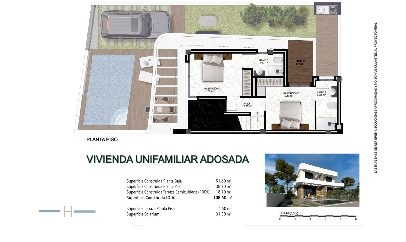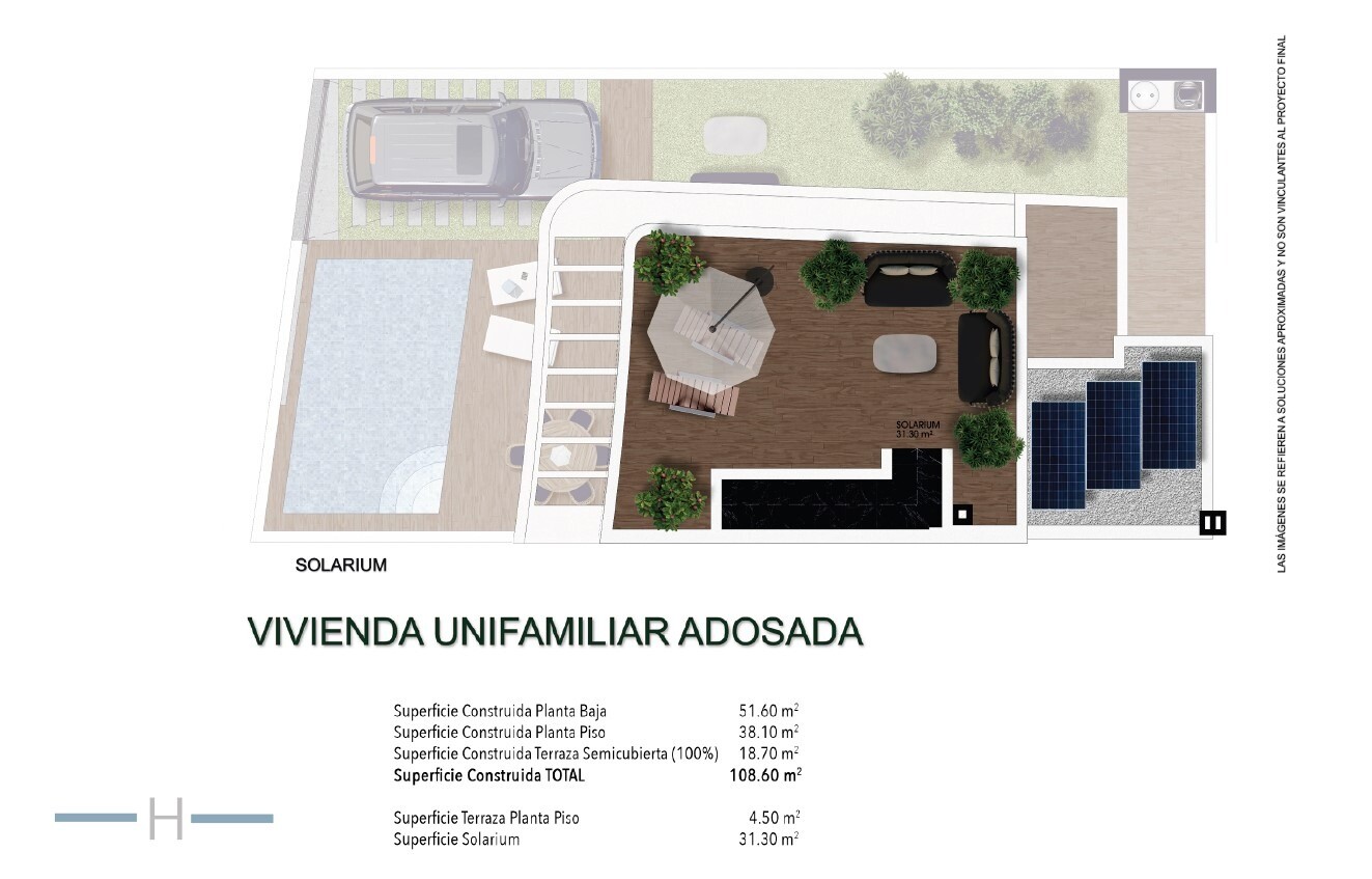 31m2 soliariumas. Maža 32 keturračių namų ir 4 atskirų namų rezidencija ramiame Los Montesinos rajone, netoli visų įmanomų patogumų ir golfo kurortų. Ideali vieta mėgstantiems važinėtis dviračiu, nes yra labai geras dviračių takų susisiekimas. Įvairių žaidimų aikštelės automobiliu pasiekiamos maždaug per 20 minučių. Alikantės oro uostas apie 30 min...učių