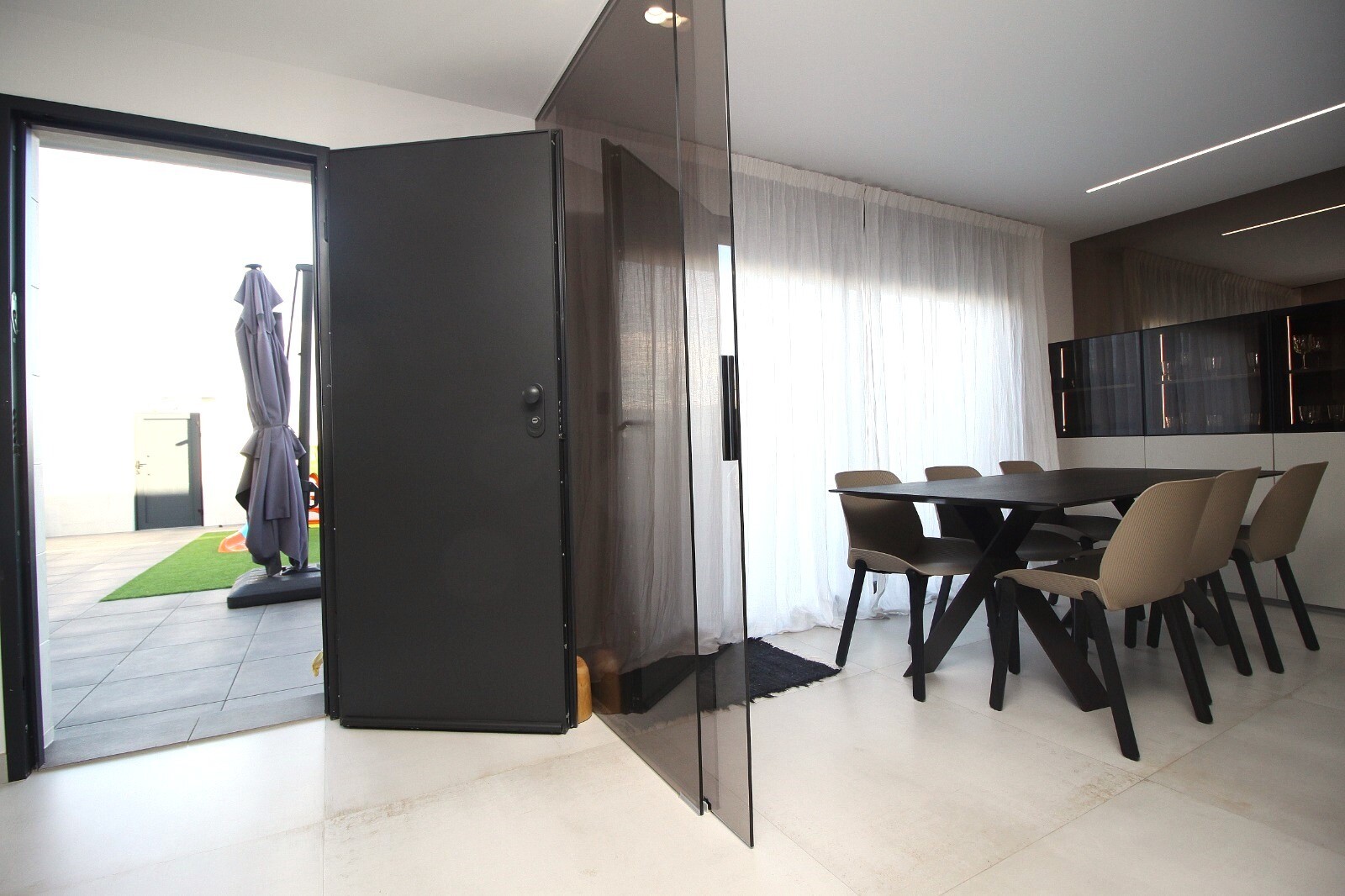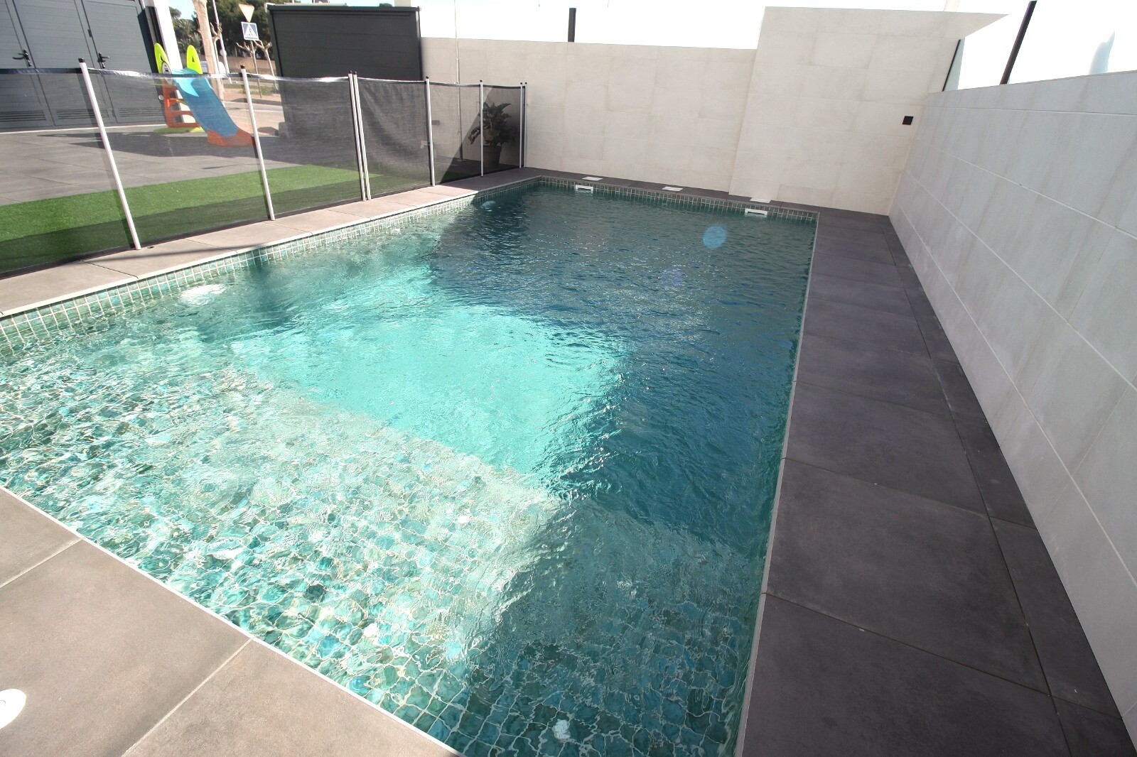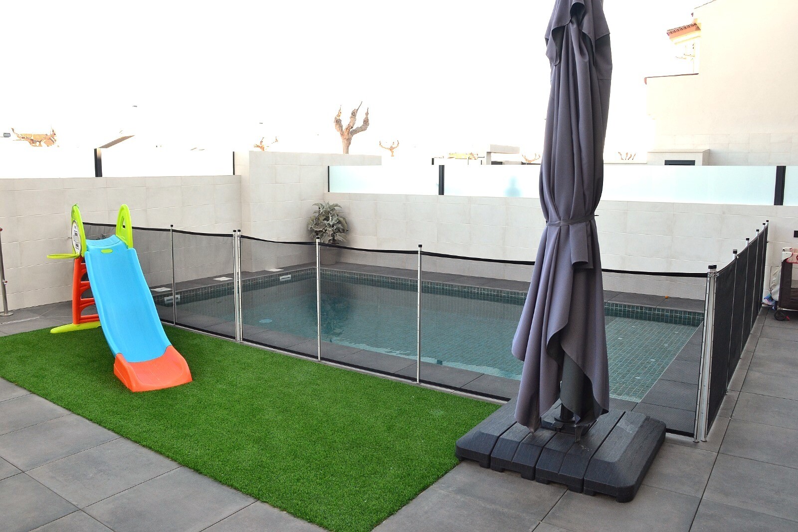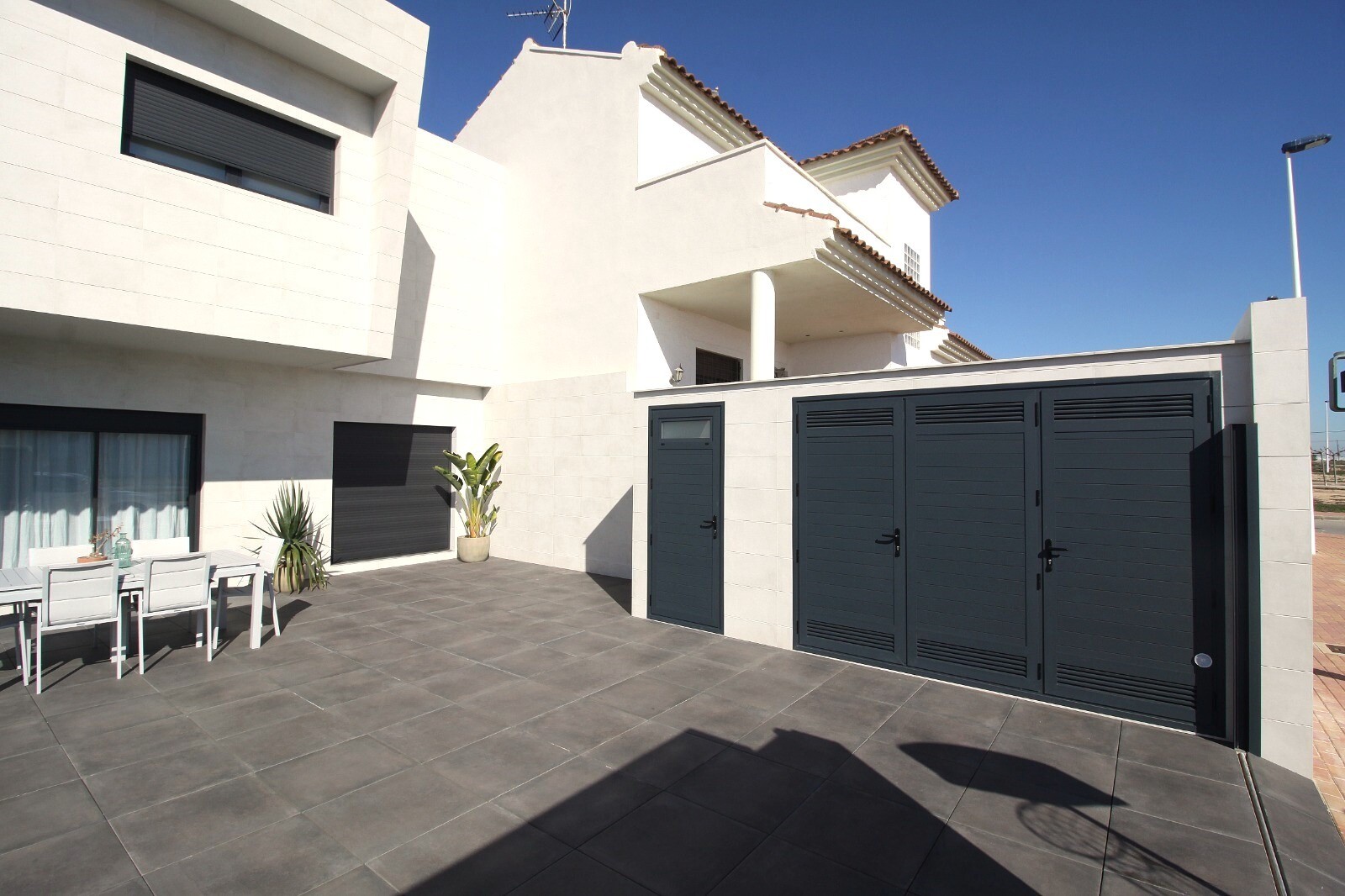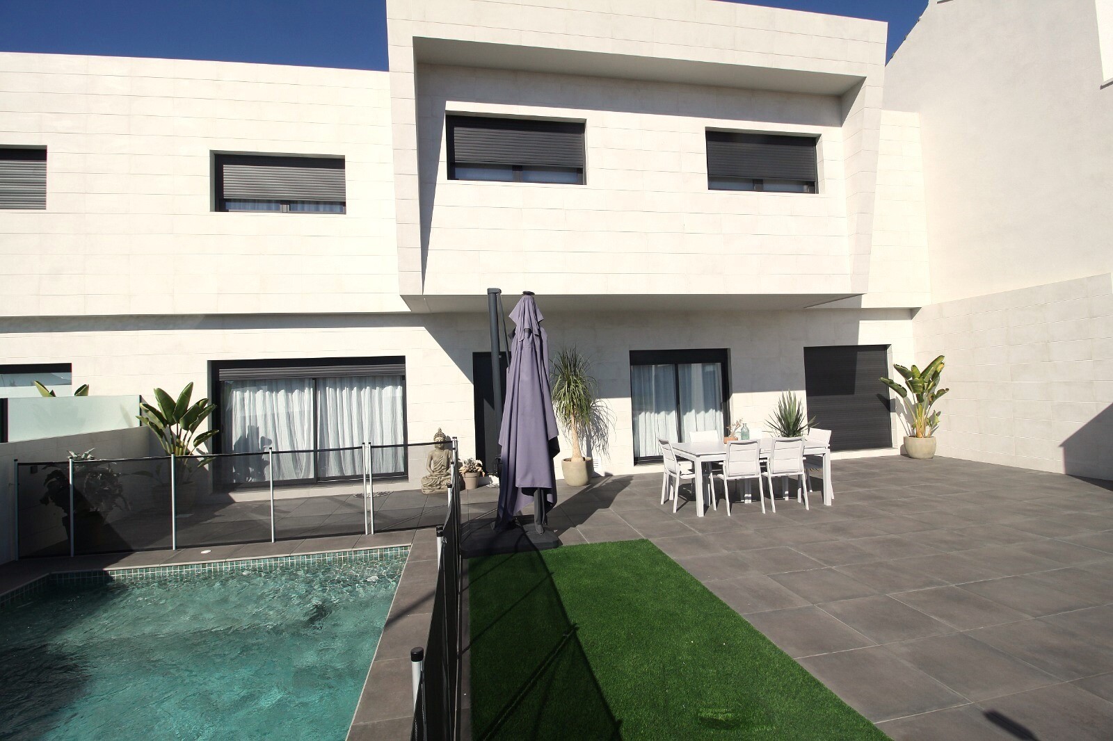 Neseniai perparduotas sublokuotas namas su terasa San Pedro del Pinatar su 4 miegamaisiais ir 2 vonios kambariais bei lauko tualetu prie 6x4m baseino su įmontuota sūkurine vonia. Namas yra 3 km nuo Viduržemio jūros ir 500 m nuo centro. Namas pilnai įrengtas su šildomomis grindimis, oro kondicionieriumi ir virtuvės buitine technika. Korveros ir Alik...antės oro uostus galima pasiekti atitinkamai per 30 ir 50 minučių.