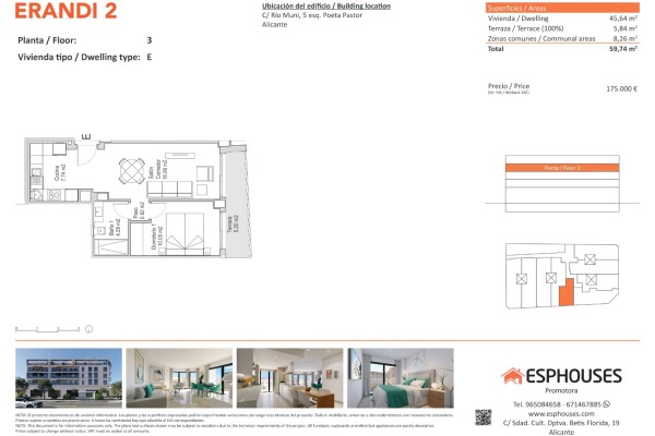 Šis šviesus, naujos statybos butas trečiame ERANDI 2 pastato aukšte — puikus pasirinkimas ieškantiems komforto, efektyvumo ir puikios lokacijos viename iš prestižiškiausių Alikantės rajonų — La Floridoje.