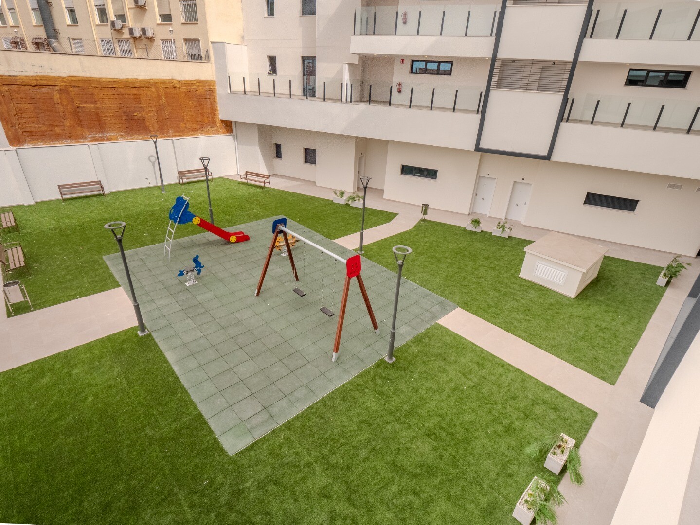 Pastatas siūlo pilnai įrengtas bendras erdves, įskaitant bendrą baseiną ir poilsio zoną ant stogo, taip pat apželdintas zonas ir vaikų žaidimų aikštelę, puikiai tinkančias poilsiui ir šeimos laisvalaikiui.