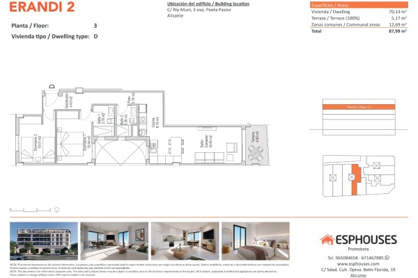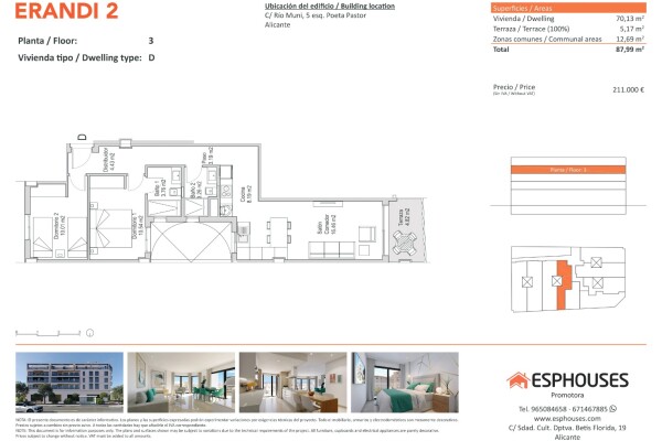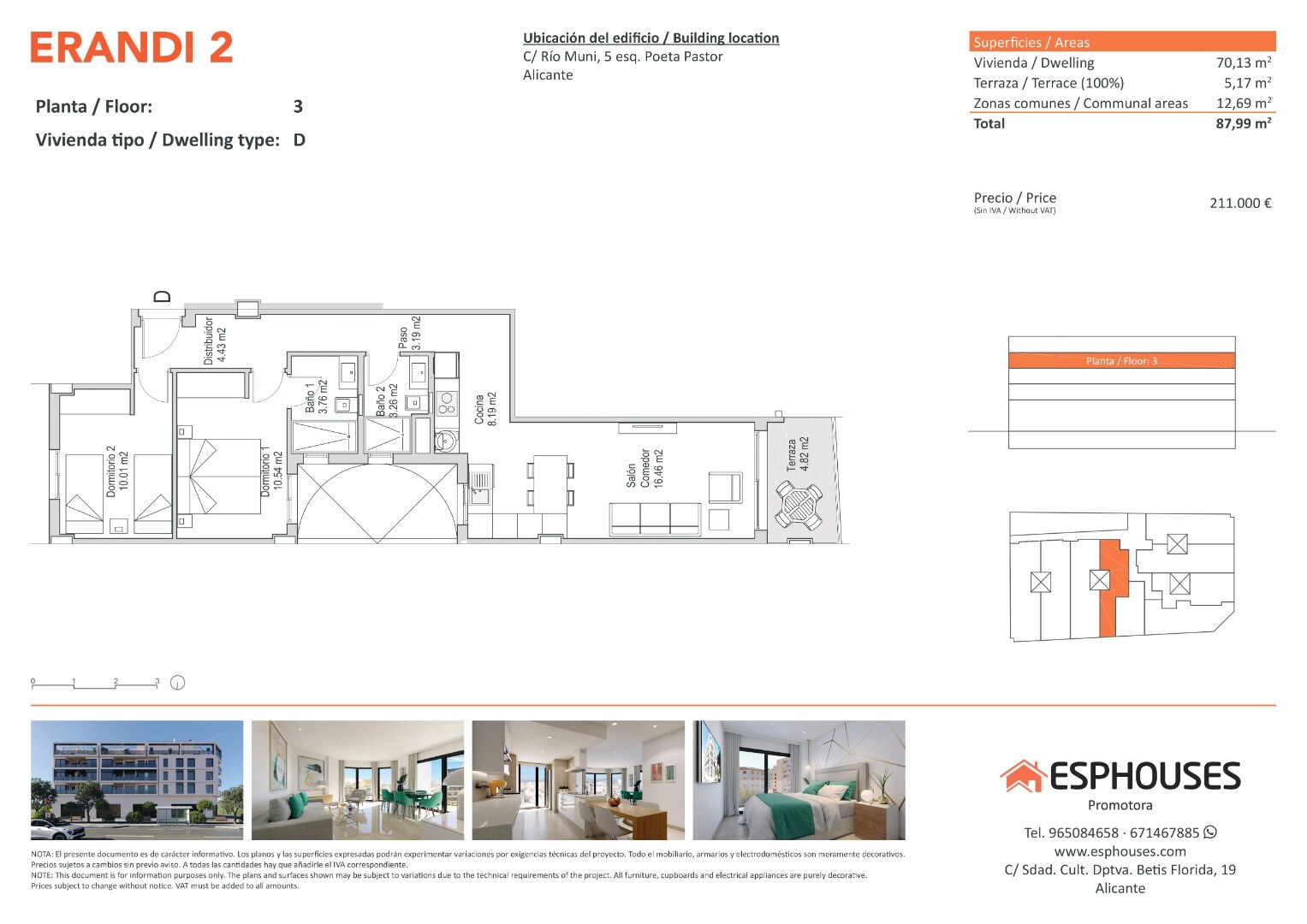 Šis jaukus naujos statybos butas yra trečiame ERANDI 2 pastato aukšte ir išsiskiria moderniu, funkcionaliu dizainu, puikia apdaila ir išskirtine vieta La Floridos rajone — viename geriausiai susisiekiančių ir labiausiai vertinamų Alikantės rajonų.