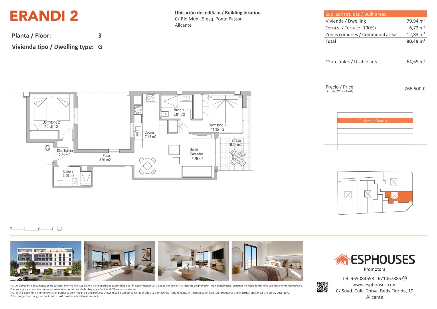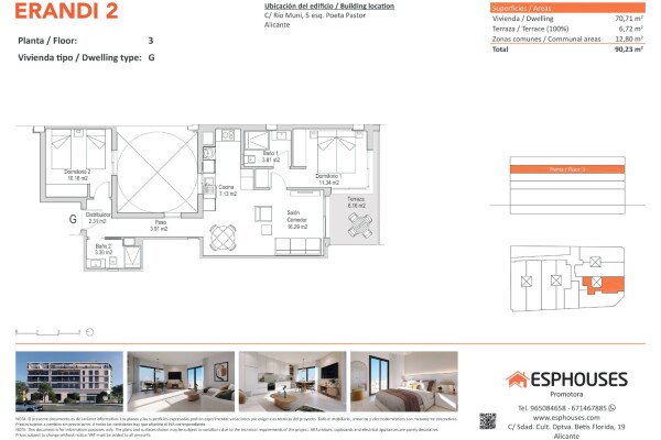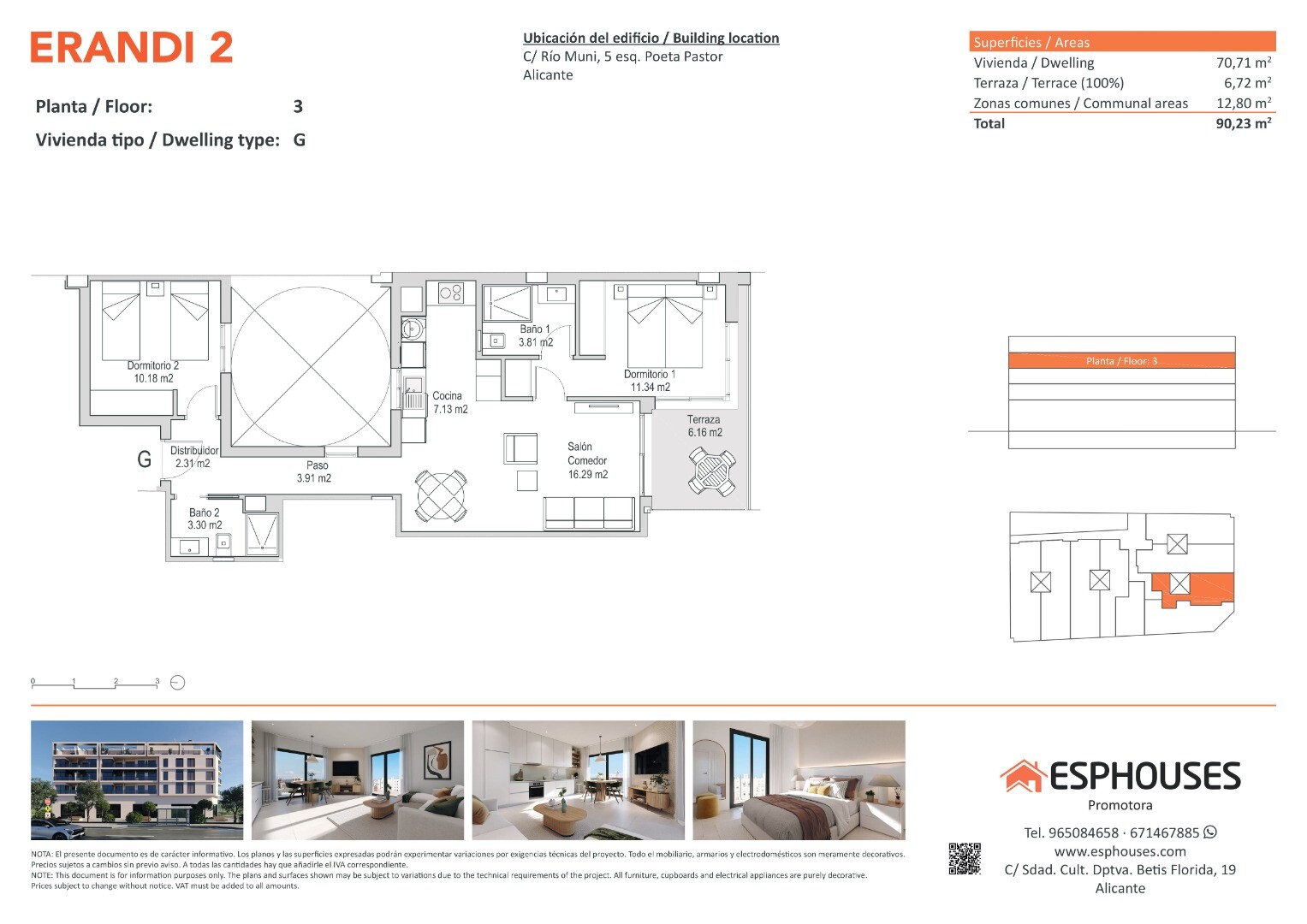 Šis naujos statybos butas trečiajame ERANDI 2 pastato aukšte siūlo modernų ir funkcionalų išplanavimą su puikia pietų orientacija, užtikrinančia natūralią šviesą visą dieną. Įsikūręs La Floridos rajone – viename žymiausių ir geriausiai sujungtų Alikantės rajonų.