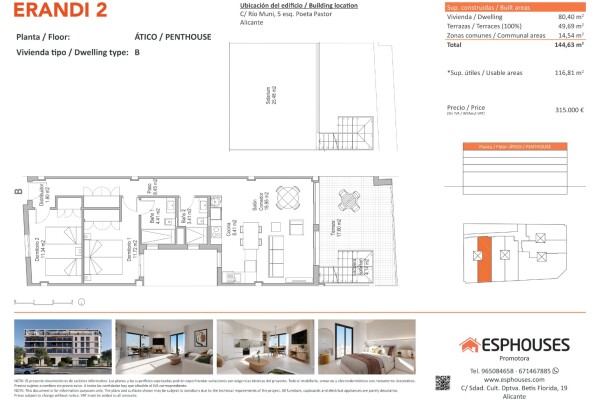 Atraskite šią išskirtinę naujos statybos mansardą, esančią ketvirtame ERANDI 2 pastato aukšte – tai unikali galimybė gyventi stilingai ir mėgautis Viduržemio jūros klimatu. Būsto plotas – 80,40 m², jame yra du miegamieji su įmontuotomis spintomis, du vonios kambariai ir erdvi svetainė su atvira virtuve.