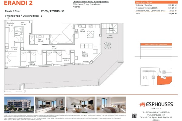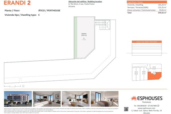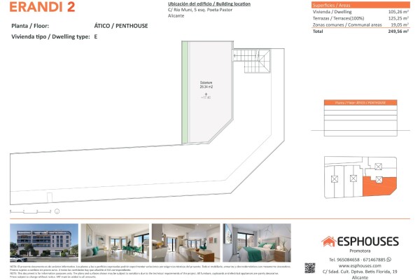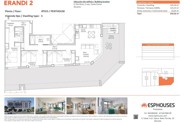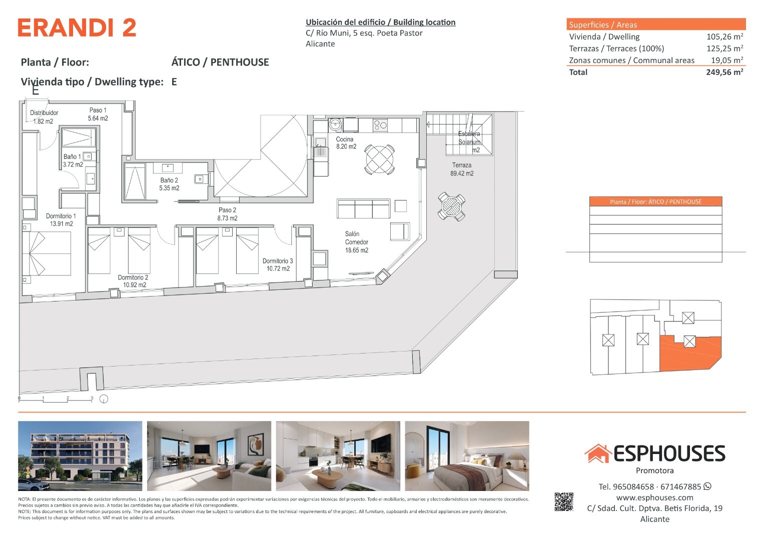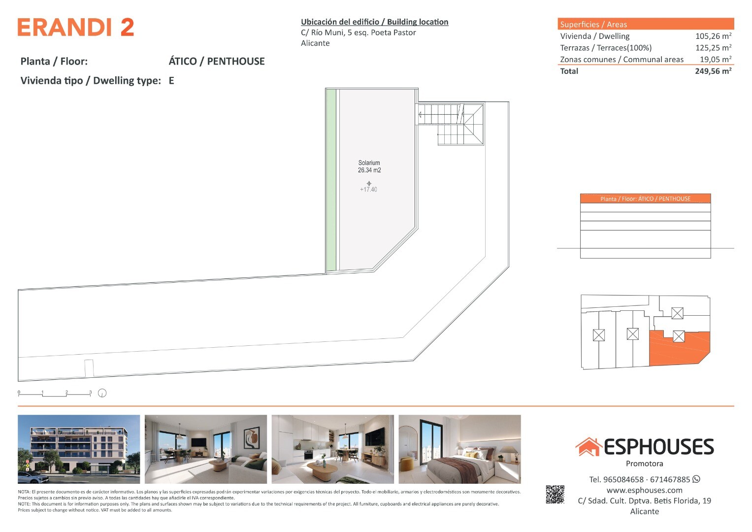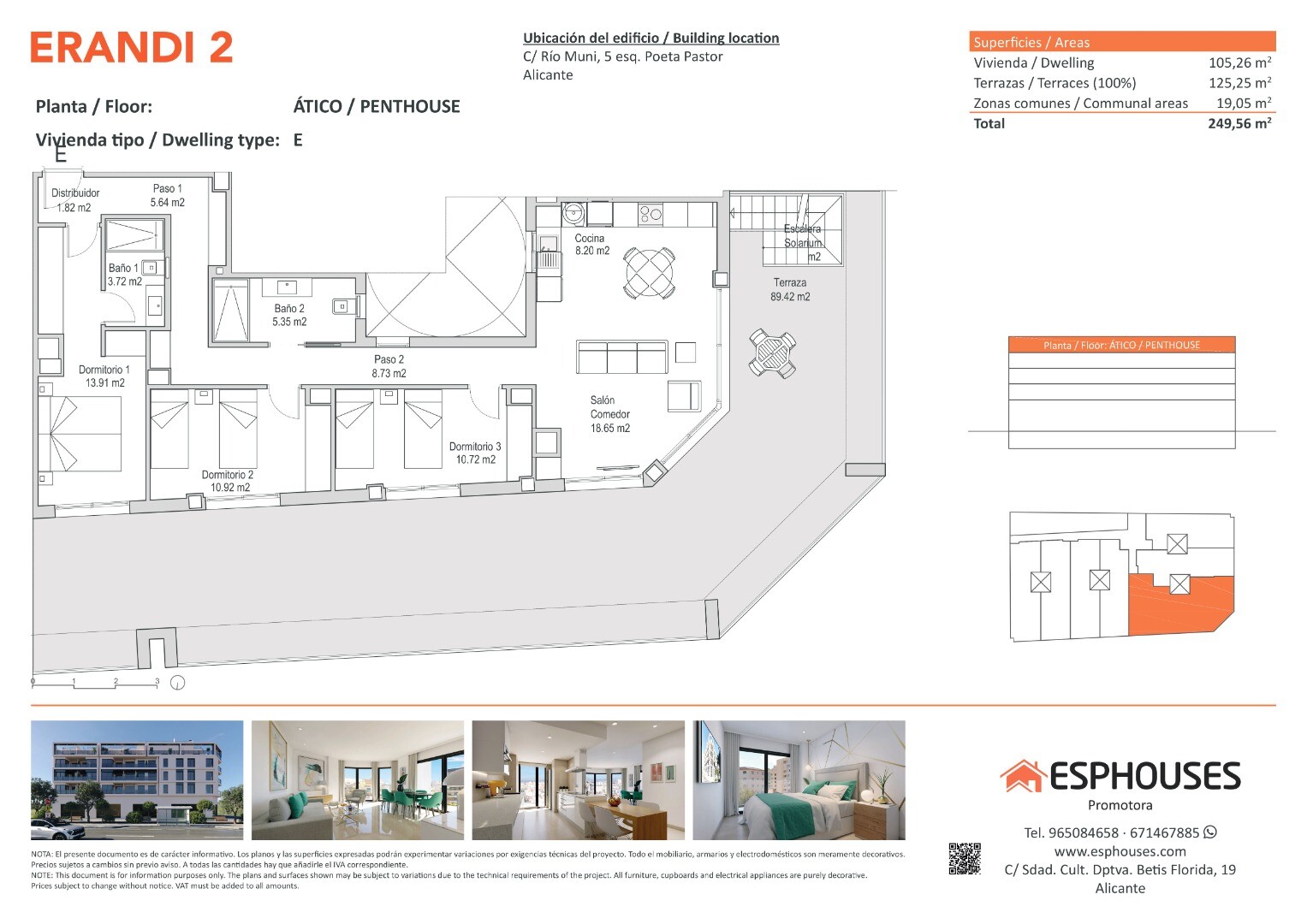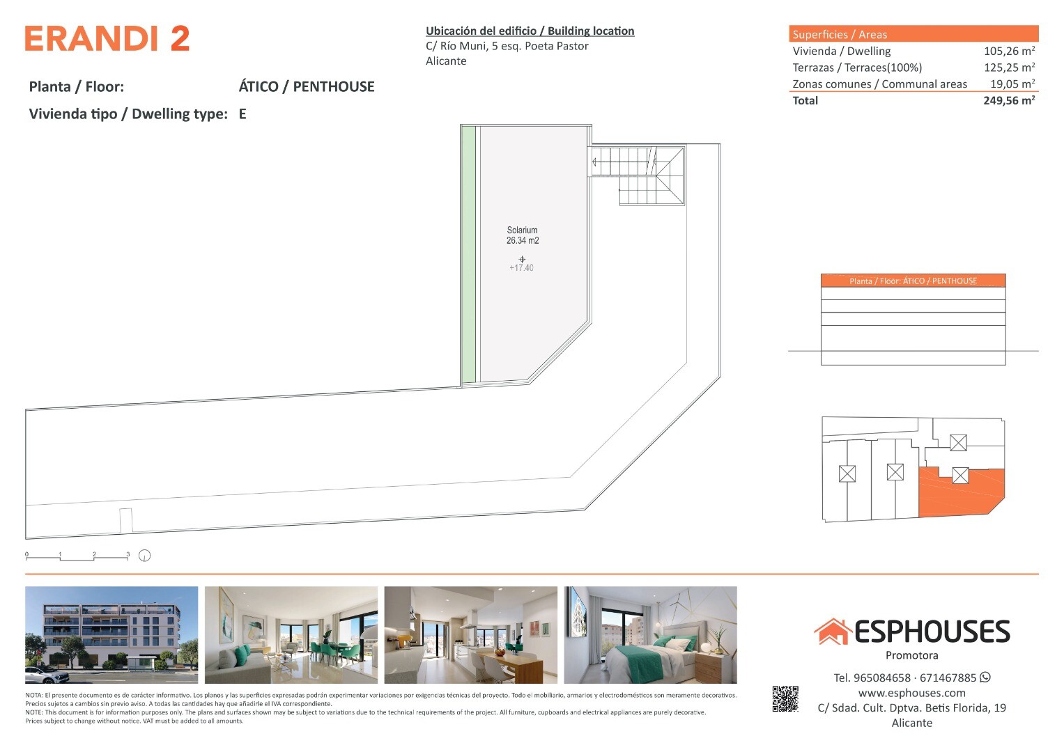 Šis įspūdingas naujos statybos penthausas yra ketvirtame pastato ERANDI 2 aukšte, garsiajame La Florida rajone – vienoje geriausiai sujungtų ir labiausiai išvystytų Alikantės vietovių. Buto bendras plotas siekia 105,26 m², jame yra trys erdvūs miegamieji su įmontuotomis spintomis, du visiškai įrengti vonios kambariai ir šviesi svetainė su atvira vi...rtuve, sukurta šiuolaikiniu stiliumi, kad būtų maksimaliai išnaudota natūrali šviesa.