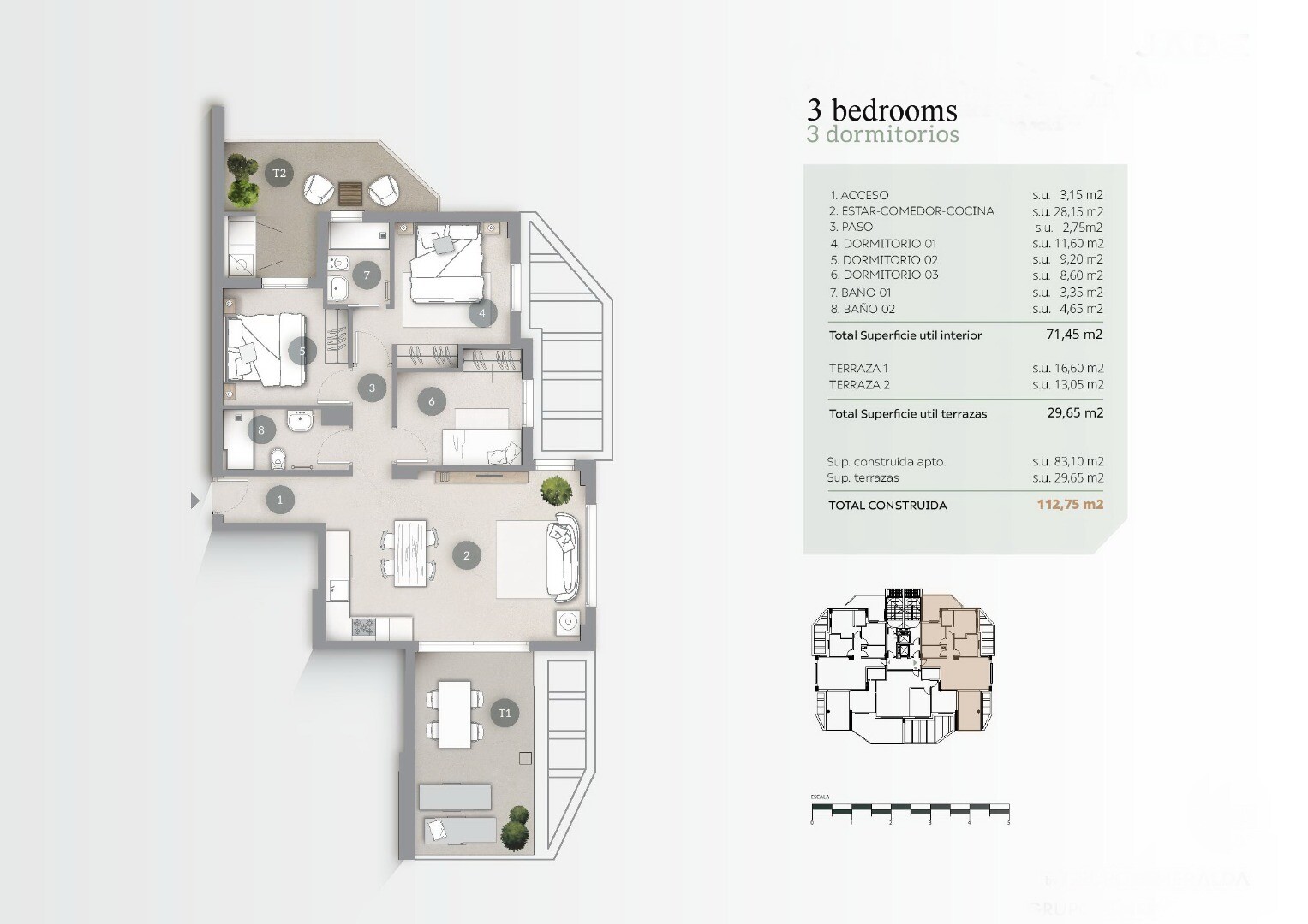 Unikalus būsto projektas su jūros kvapu, kuriame gyvenimas paplūdimyje yra svajonės išsipildymas. Turime apartamentus ir mansarda su 2 ir 3 miegamaisiais, specialiai sukurtus tam, kad galėtumėte mėgautis unikaliu gyvenimo būdu.