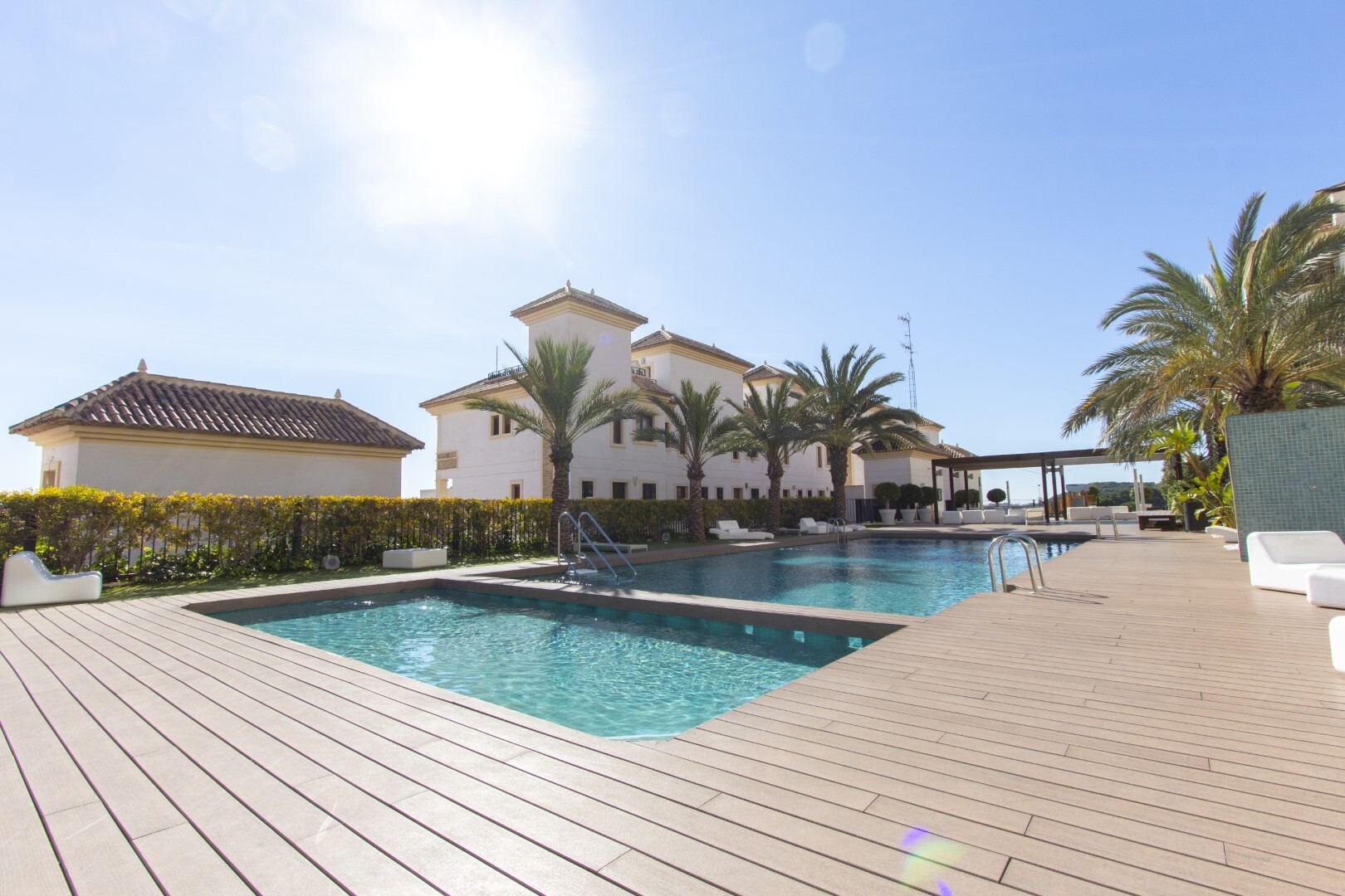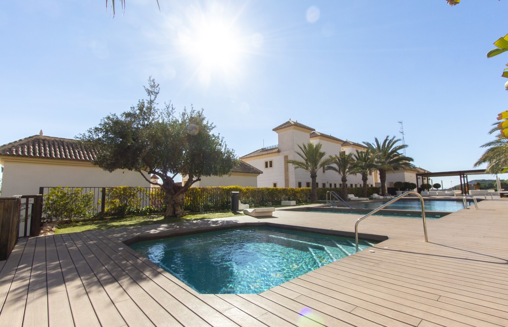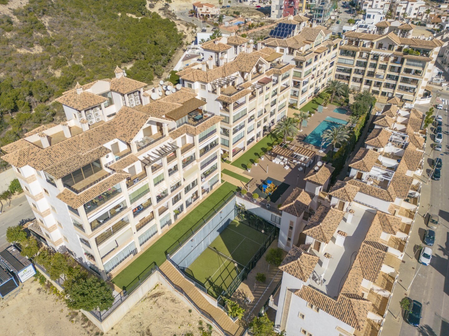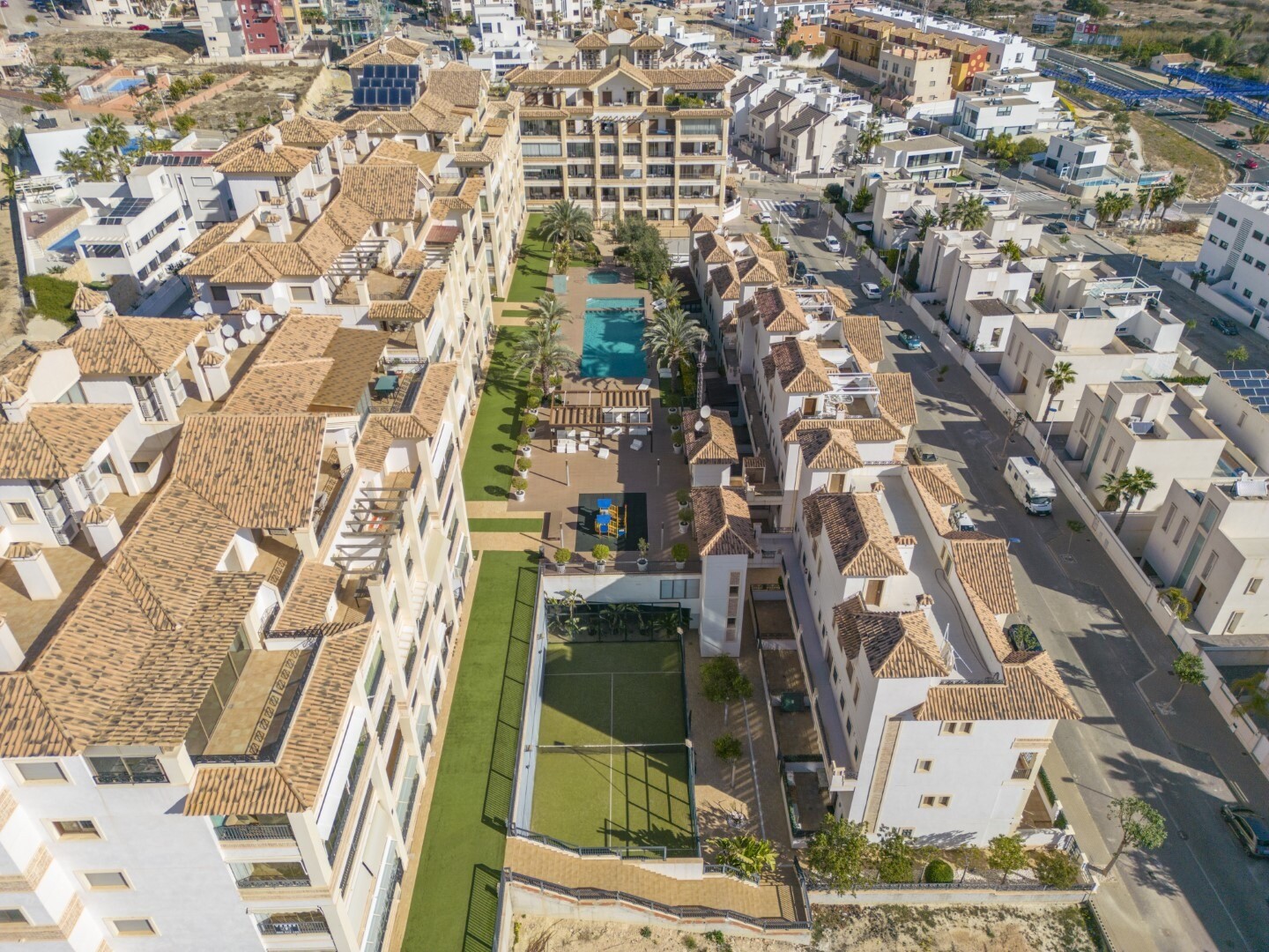 Butas pirmame aukšte, uždarame gyvenamajame rajone, su tiesioginiu išėjimu į sodo zoną su baseinu ir sodais. Namą sudaro 2 miegamieji ir 2 vonios kambariai, atskira virtuvė su galerija ir terasa, svetainė ir valgomasis, taip pat 2 miegamieji su išėjimu į didelę įstiklintą terasą. Gyvenamasis namas pastatytas naudojant aukščiausios kokybės medžiagas... ir apdailą, namuose yra motorizuotos žaliuzės, namų automatikos sistema, seifas, kanalizuotas oro kondicionierius ir daug daugiau detalių. Gyvenamajame name yra didelis vasaros ir žiemos baseinas, sauna, treniruoklių salė, padelio teniso kortai, mini golfas ir gražios sodo zonos, kuriomis galės mėgautis kaimynai. Į kainą įskaičiuota parkavimo vieta pastato rūsyje. Namas parduodamas su visais baldais ir buitine technika.
