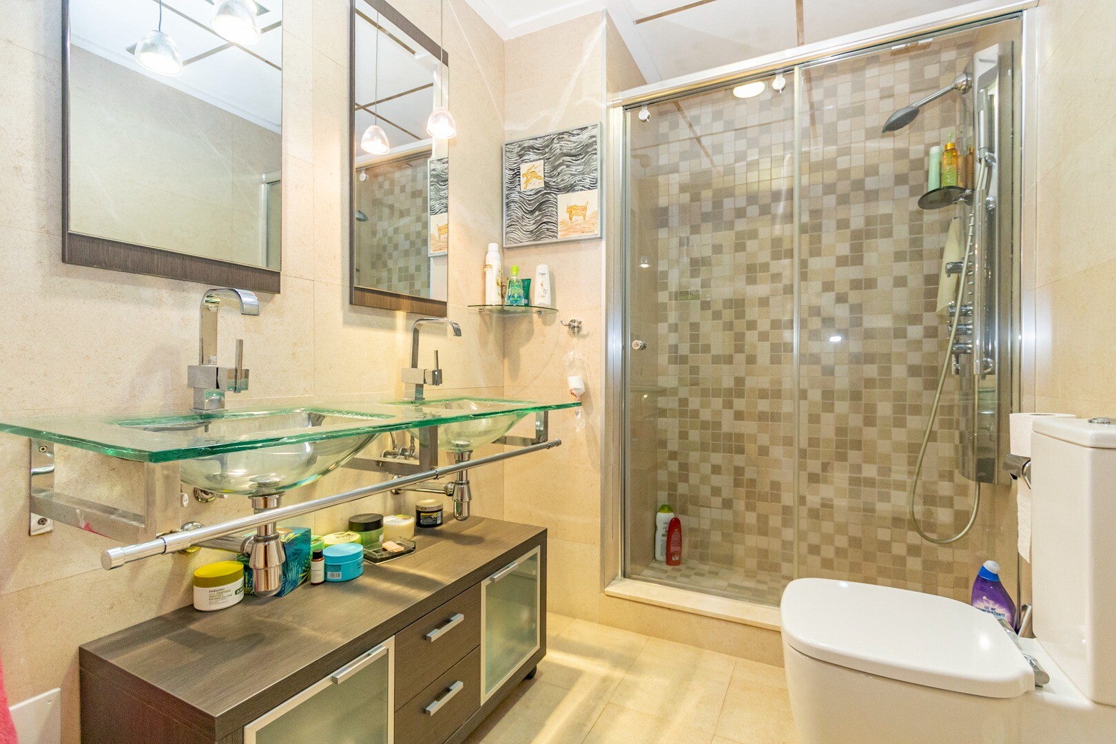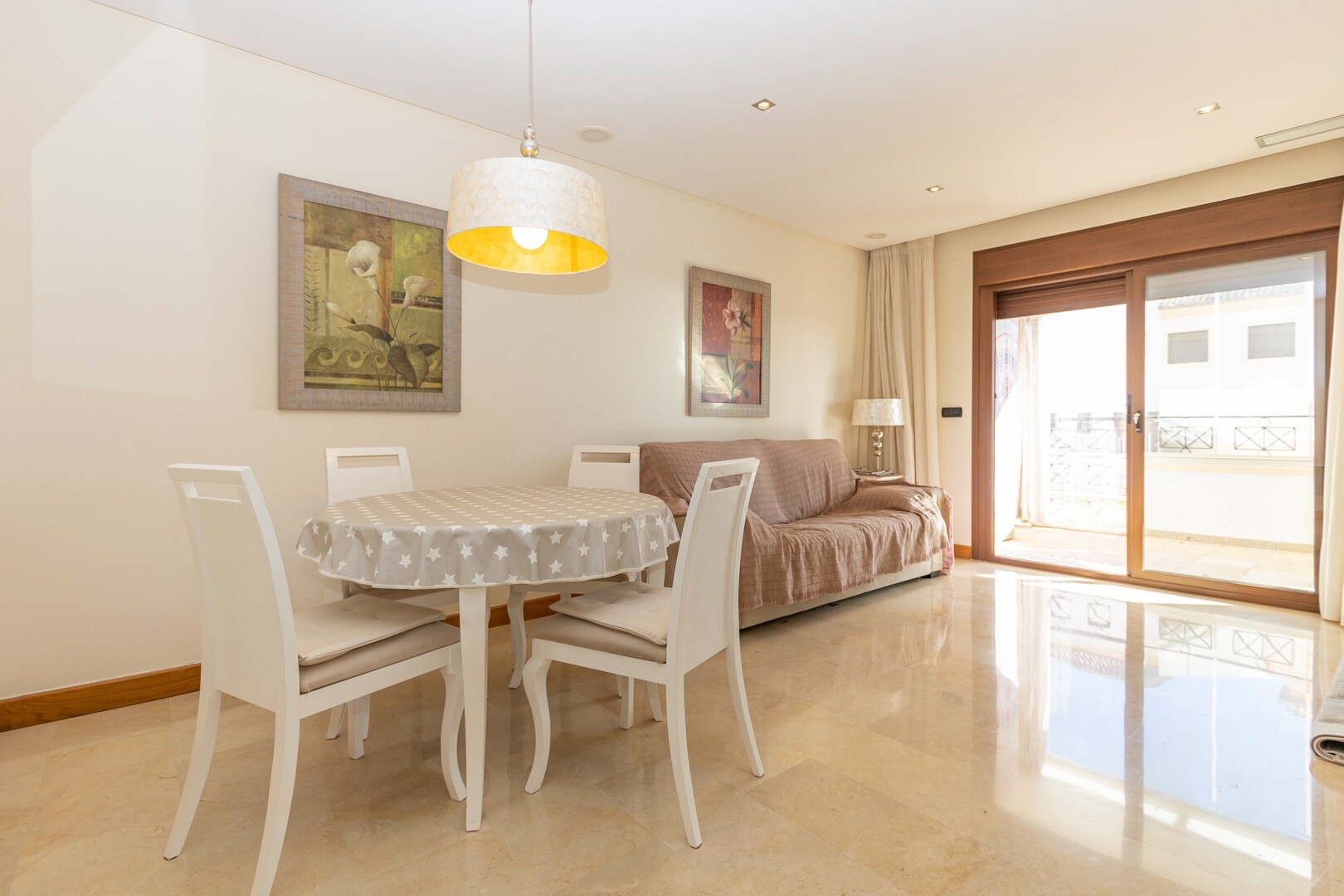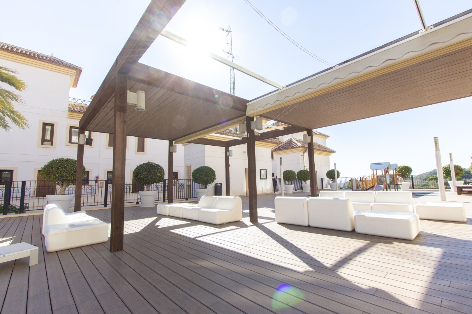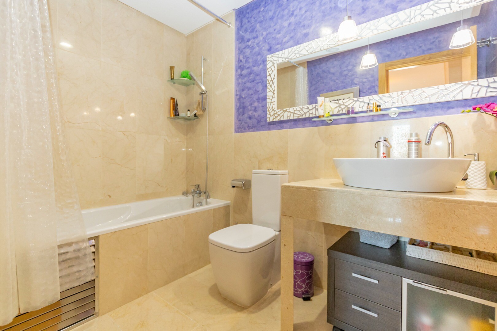 Butas pirmame aukšte, uždarame gyvenamajame rajone, su tiesioginiu išėjimu į sodo zoną su baseinu ir sodais. Namą sudaro 2 miegamieji ir 2 vonios kambariai, atskira virtuvė su galerija ir terasa, svetainė ir valgomasis, taip pat 2 miegamieji su išėjimu į didelę įstiklintą terasą. Gyvenamasis namas pastatytas naudojant aukščiausios kokybės medžiagas... ir apdailą, namuose yra motorizuotos žaliuzės, namų automatikos sistema, seifas, kanalizuotas oro kondicionierius ir daug daugiau detalių. Gyvenamajame name yra didelis vasaros ir žiemos baseinas, sauna, treniruoklių salė, padelio teniso kortai, mini golfas ir gražios sodo zonos, kuriomis galės mėgautis kaimynai. Į kainą įskaičiuota parkavimo vieta pastato rūsyje. Namas parduodamas su visais baldais ir buitine technika.