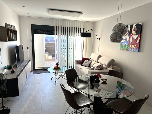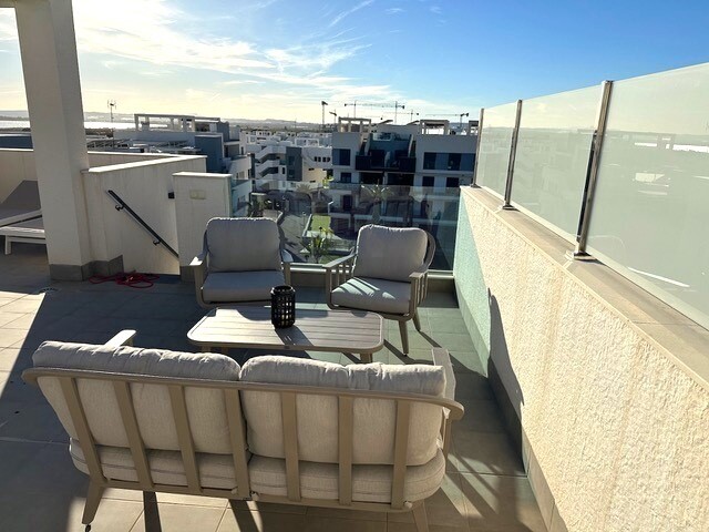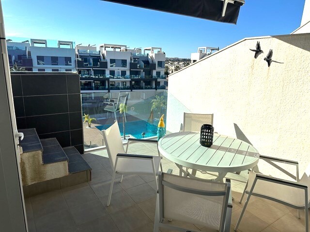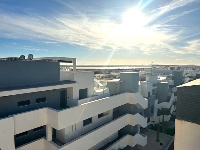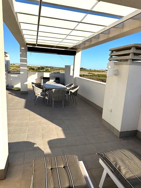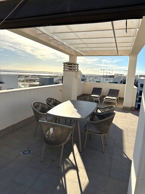 Soliariumas 77m2. Šis gražus kampinis mansarda yra tikras perlas paklausioje El Raso urbanizacijoje, vos kelios minutės nuo Guardamar del Segura su auksinio smėlio paplūdimiais. Šis turtas, esantis išskirtinėje vietoje ir nuostabiais vaizdais, siūlo išskirtinį gyvenimo būdą. Mėgaukitės nuostabiais citrinmedžių ir druskos lagūnų vaizdais. Ramybė ir ...natūralus grožis garantuoti. Šis mansarda buvo kruopščiai prižiūrimas ir atrodo kaip naujas. Pasiruošę gyventi ir mėgautis. Erdvi 77 m2 saulės terasa yra puiki vieta atsipalaiduoti stebint saulę, leidžiančią virš druskos lygumos. Įsivaizduokite vakarienes lauke ir nepamirštamas akimirkas su draugais ir šeima. Šiame mansarda, aprūpinta aukščiausios kokybės medžiagomis, A prekės ženklo buitine technika ir aukštos kokybės baldais, suteikia komfortą ir eleganciją. Šildymo plokštės, žaliuzės nuo saulės, markizės terasoje, sodo baldai ir požeminė parkavimo vieta. Mėgaukitės dviem nuostabiais baseinais, treniruoklių sale, SPA sveikatingumo zona, mini golfo, stalo teniso ir petankės kortais. Tai visiškai paruoštas butas su viskuo, ko reikia Viduržemio jūros regiono gyvenimo būdui. Nepraleiskite šios unikalios galimybės!