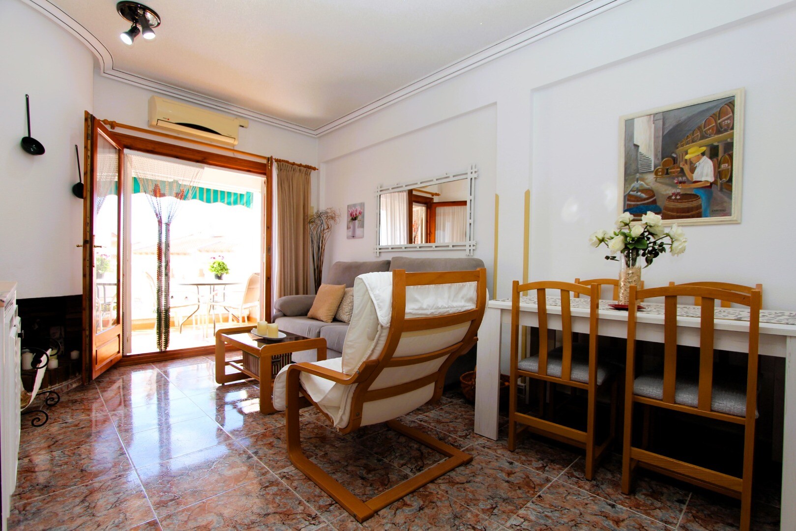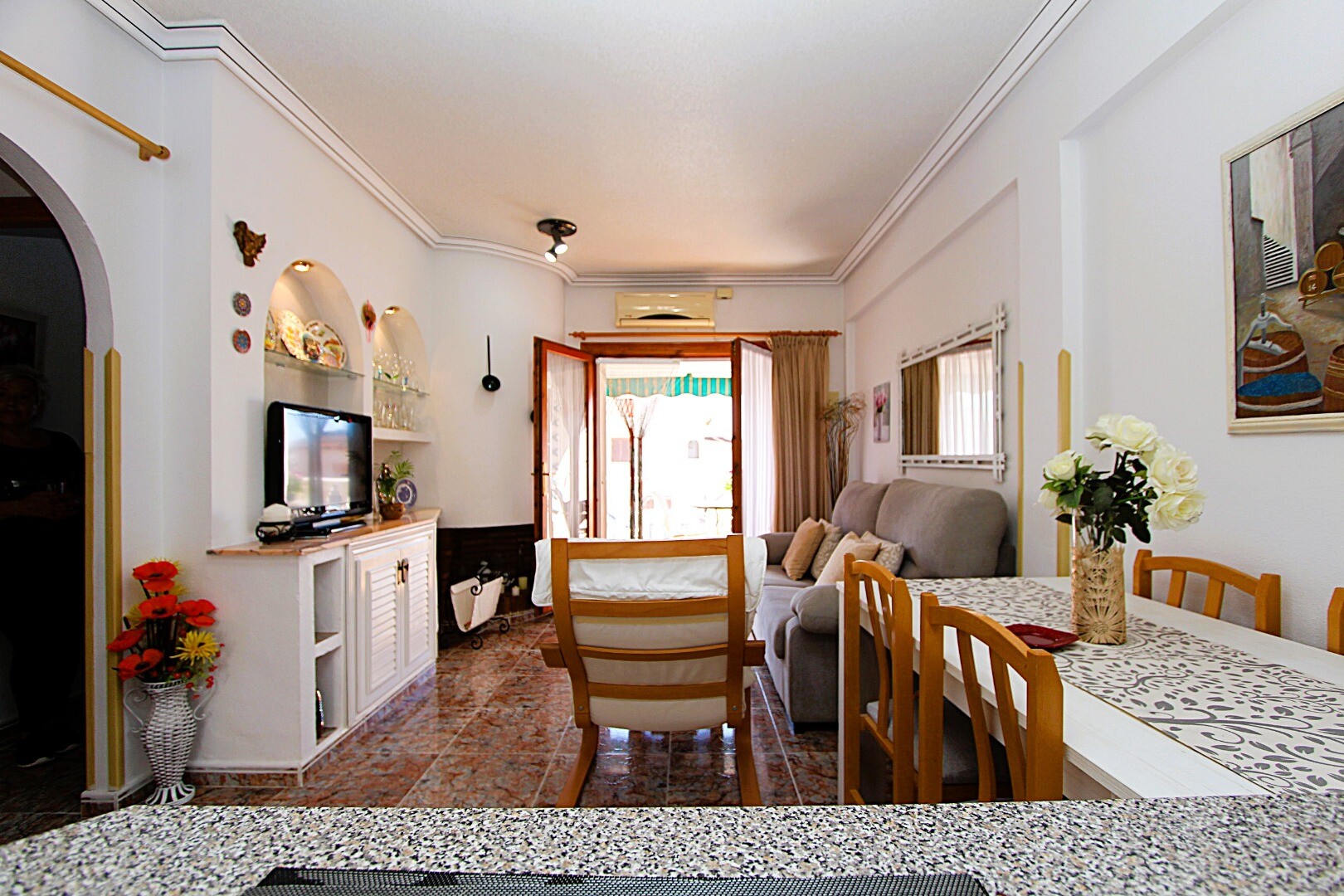 Ar įsivaizduojate, kaip būtų gyventi ramioje aplinkoje, kurioje visus metus galėtumėte mėgautis Viduržemio jūros saulės spinduliais? Siūlome jums šį jaukų butą pirmame aukšte, esantį „El Moncayo“ gyvenamųjų namų kvartale Guardamar del Segura mieste, Alikantės provincijoje, Ispanijoje. Nekilnojamasis turtas yra labai gerai prižiūrėtas ir puikios būk...lės, todėl galėsite iškart įsikurti ir nereikės rūpintis remontais. Bute yra du miegamieji, vonios kambarys, pietų pusėje esanti terasa prie įėjimo ir erdvus solariumas viršutiniame aukšte, kuriame galėsite atsipalaiduoti be jokių trukdžių. Gyvenamajame rajone yra 2 bendri baseinai, kuriuose galėsite maloniai praleisti laiką karštomis dienomis. Garsiosios Guardamar del Segura paplūdimiai yra apie 5 minutes kelio automobiliu. Susisiekite su mumis, jei norite gauti daugiau informacijos ir susitarti dėl apžiūros! Mes mielai Jums padėsime!
