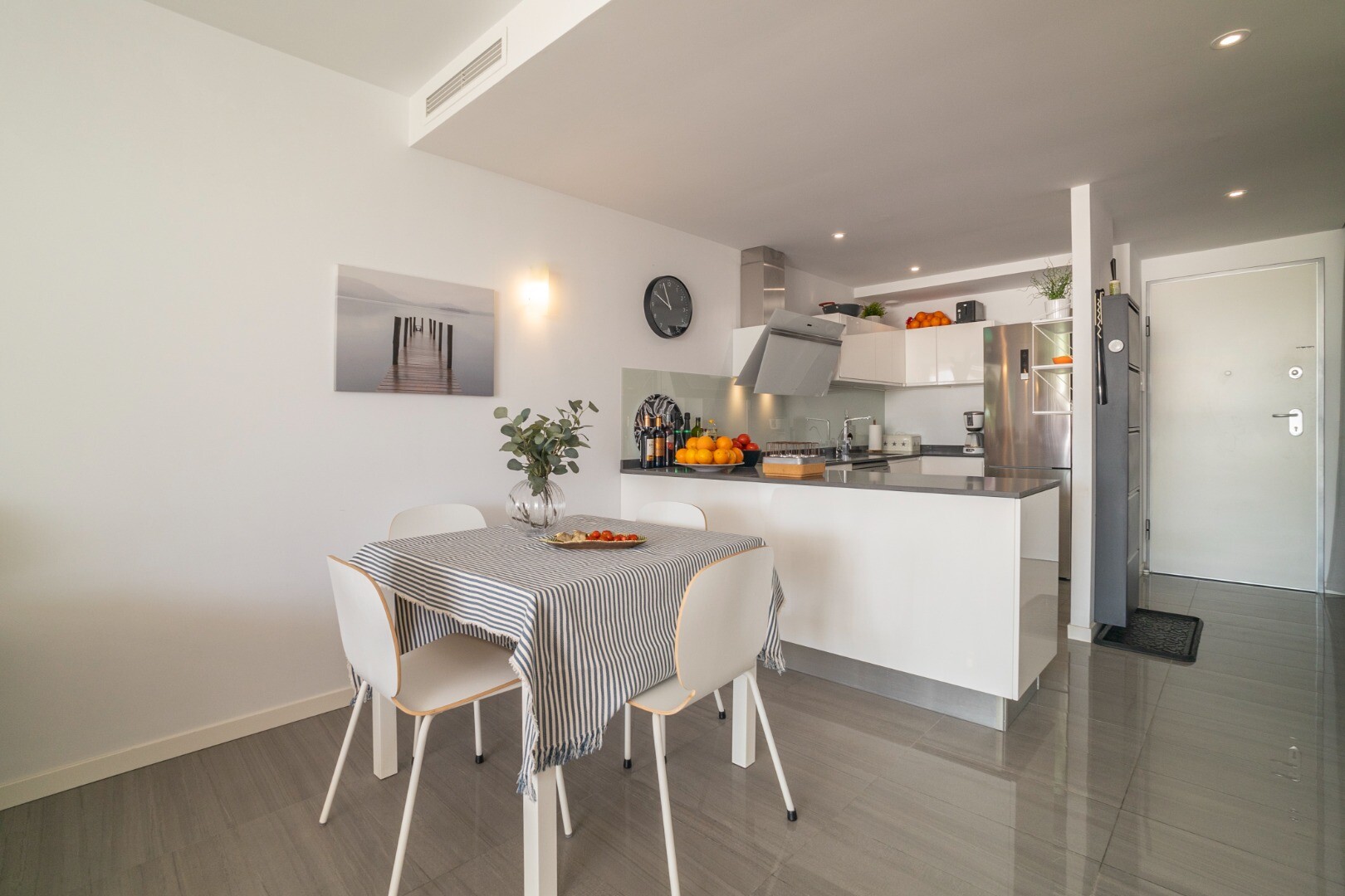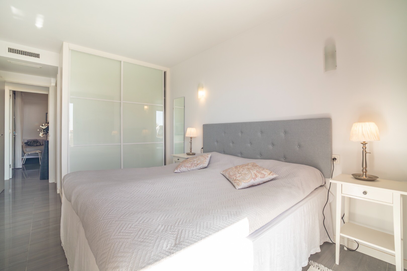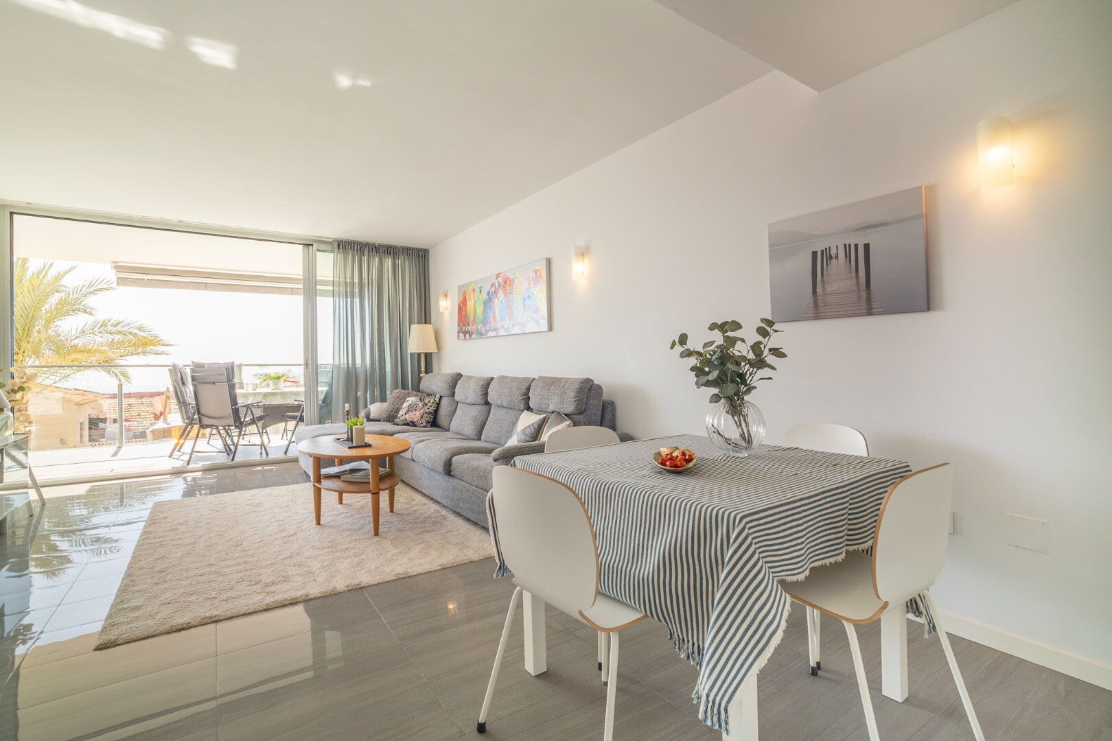 Norėtume jums pristatyti šį modernų ir erdvų būstą, kuriame yra 3 miegamieji su įmontuotomis spintomis, 2 vonios kambariai (vienas iš jų su v...onios kambariu), svetainė-valgomasis ir virtuvė su išėjimu į didelę terasą, iš kurios atsiveria frontalūs Viduržemio jūros vaizdai.
