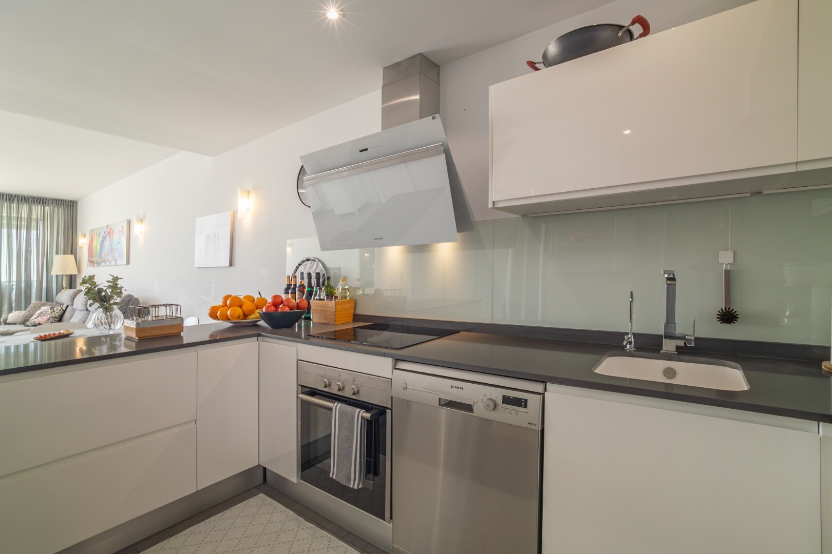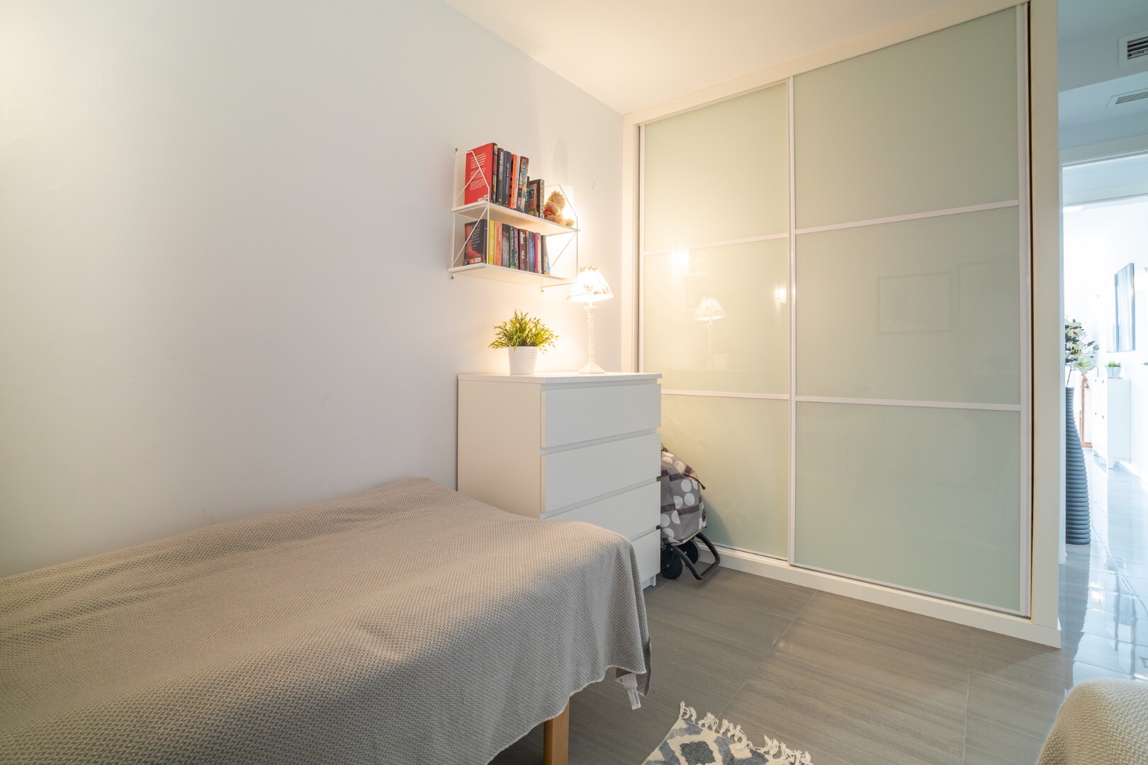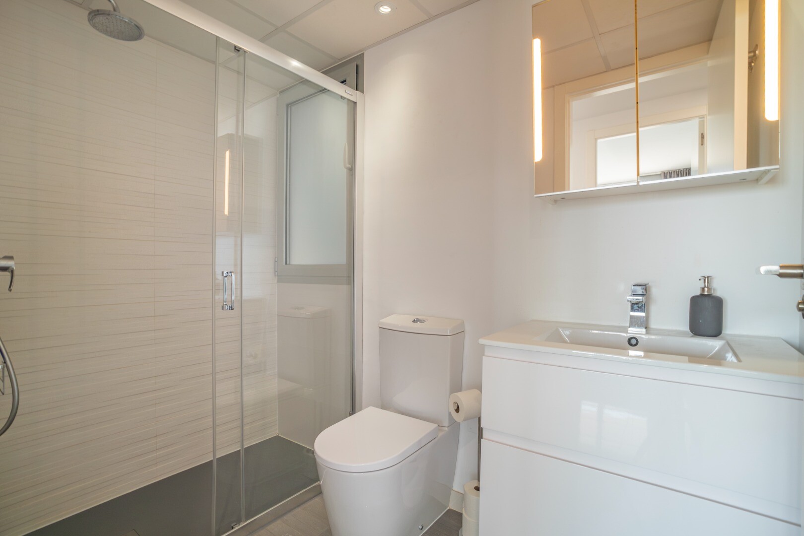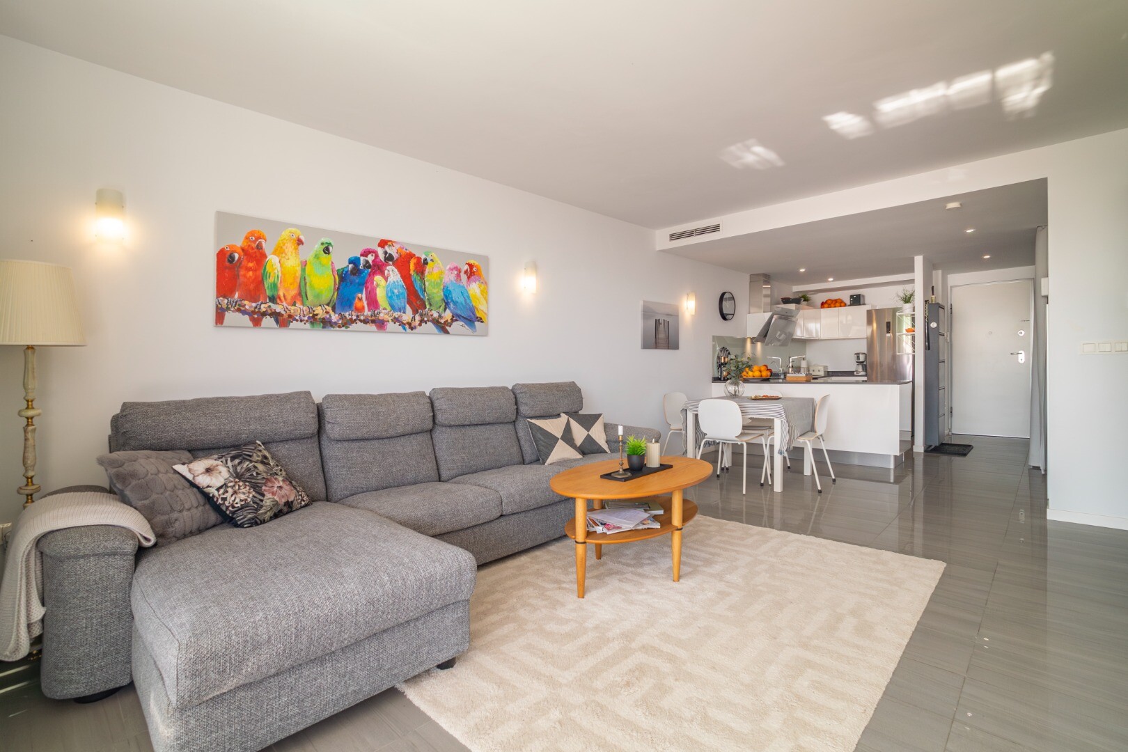 Norėtume jums pristatyti šį modernų ir erdvų būstą, kuriame yra 3 miegamieji su įmontuotomis spintomis, 2 vonios kambariai (vienas iš jų su v...onios kambariu), svetainė-valgomasis ir virtuvė su išėjimu į didelę terasą, iš kurios atsiveria frontalūs Viduržemio jūros vaizdai.