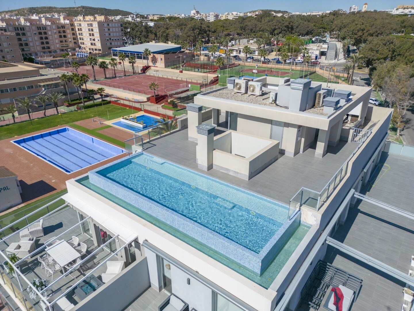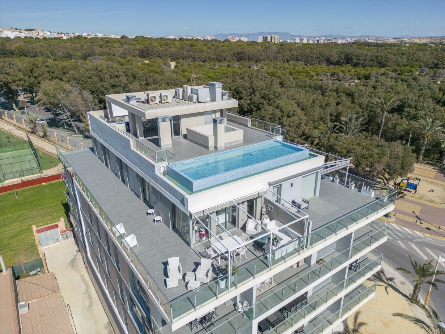 Nekilnojamasis turtas yra puikios būklės, puikių savybių, turi kanalinį oro kondicionierių, aukščiausios klasės prietaisus ir visame objekte įrengtą vandens nukalkinimo sistemą. Į kainą įskaičiuota automobilių stovėjimo vieta rūsyje su tiesioginiu išėjimu iš lifto. Be to, ant pastato stogo yra baseinas su begalybės vaizdu, kuriame galėsite mėgautis maloniomis akimirkomis ir nuostabiais vaizdais.