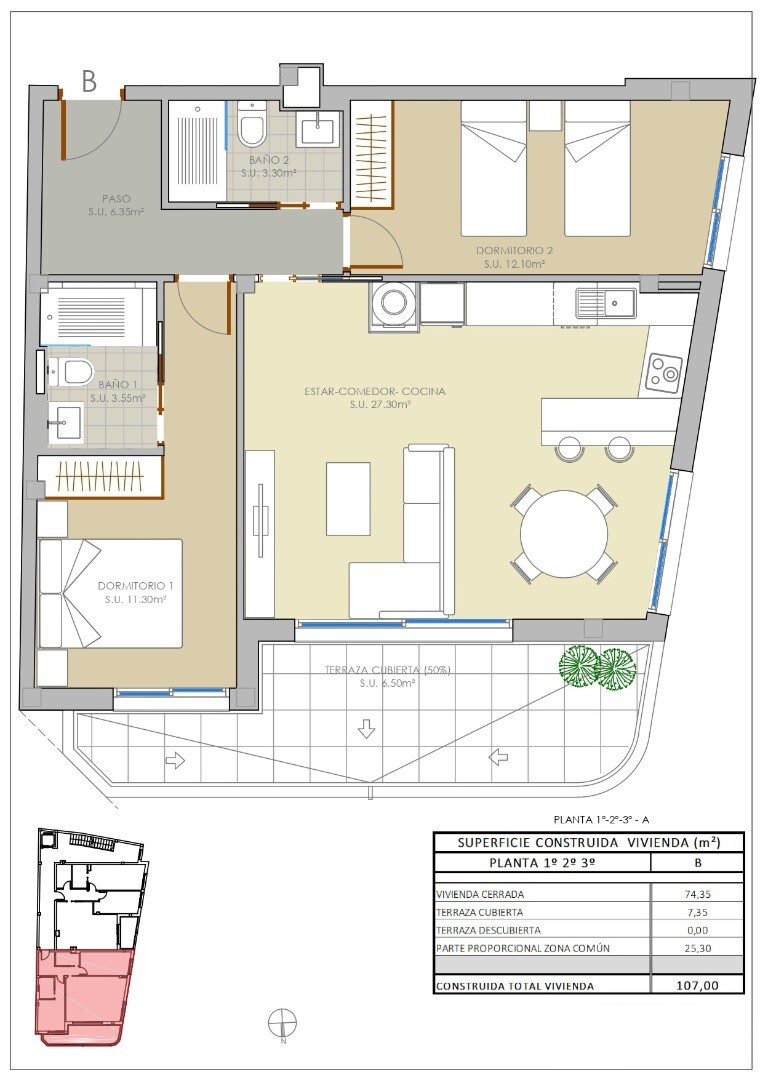 Pastatas iš 8 apartamentų su 2 miegamaisiais ir 2 vonios kambariais ir 1 mansarda su 3 miegamaisiais ir 2 vonios kambariais, pėsčiomis pasiekiami visi įmanomi patogumai. Šie apartamentai yra vos už 40 minučių kelio nuo Alikantės oro uosto.