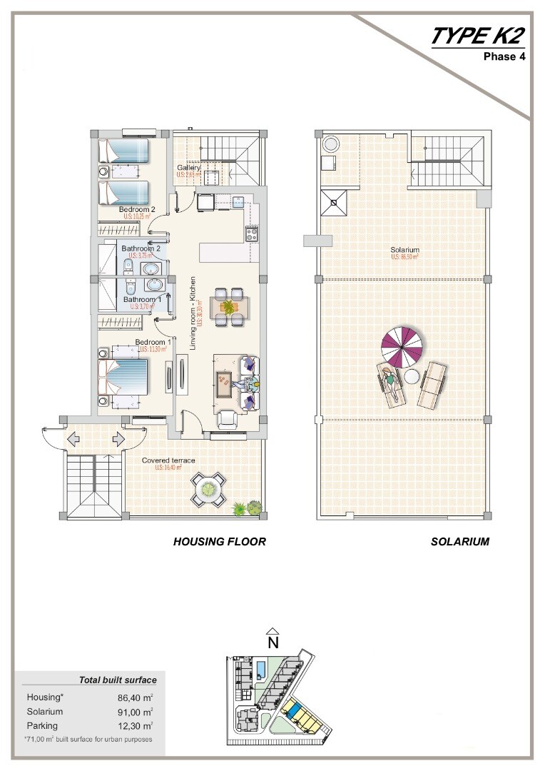 Projektą sudarys 50 skirtingų tipologijų namų. Namai bus statomi keturiais etapais. I etapas susijęs su 8 butų komplektu, iš kurių 4 yra pirmame aukšte su pusiau rūsiu, kurie iš esmės yra skirti garažui, bet kuriuose galima padaryti pertvarą ir kurių gyvenamasis plotas yra apie 24 m2, ir 4 butai viršutiniame aukšte su soliariumu. II etapas yra 4 au...kštų pastatas, kurio aukšte yra 4 butai, iš viso 16 butų, kiekviename yra greta sandėliavimo patalpos. III ir IV etapai bus panašūs į I. Apatiniuose aukštuose yra nuosavas garažas su automatiniais segmentiniais vartais su nuotoliniu valdymu. Projekte bus įrengta lauko socialinė zona su BBQ zona ir tualetais bei dvi uždaros socialinės erdvės, viena tinkama susitikimams organizuoti, su televizoriumi, šaldytuvu ir pan., o kita tikriausiai bus sporto salė. Į namus pristatomas oro kondicionierius per ortakius ir sumontuotas šilumos rekuperatorius, pilna apdaila vonios kambariai ir virtuvės technika. „Sunset Hills“ rezidencija yra privilegijuotoje vietoje, kuri vis dar plečiasi, netoli Torrevieja, Punta Prima ir Playa Flamenca paplūdimių. Apylinkėse rasite visus įmanomus patogumus: prekybos centrus, parduotuves, restoranus, barus, bankomatus, prekybos centrą „La Zenia“ po atviru dangumi, Torrevieja universitetinę ligoninę, golfo aikštynus. Dėl netoliese esančio AP-7 labai geras susisiekimas su Alikantės ir Mursijos oro uostais maždaug per 40 minučių.