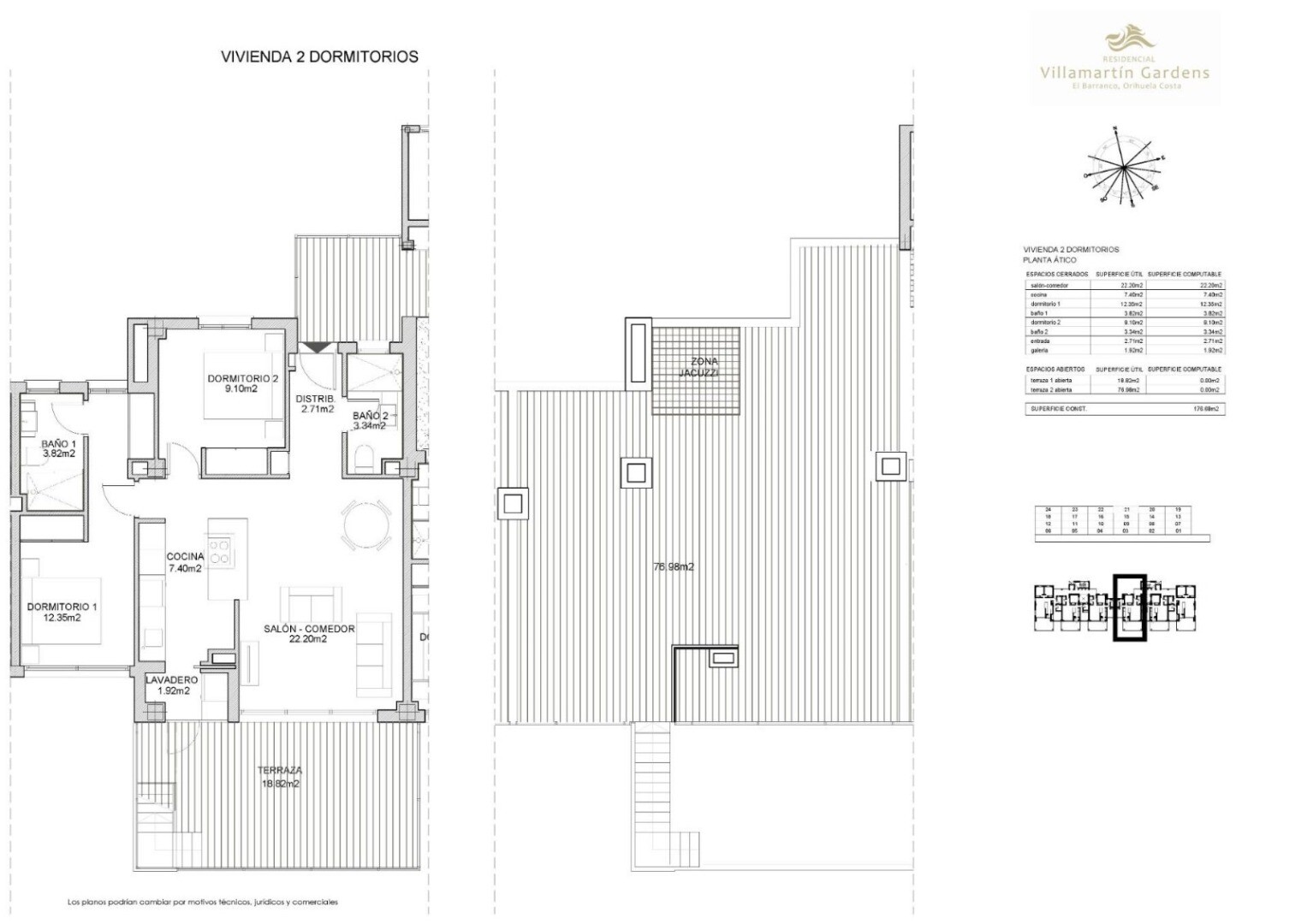 Soliariumas 77m2. Butas yra strategiškai patogioje vietoje Villamartín centre, vos 3 km nuo paplūdimio ir pėsčiomis nuo visų įmanomų patogumų, tokių kaip vaistinės, prekybos centrai ir restoranai. Be to, jis yra tik 1,5 km