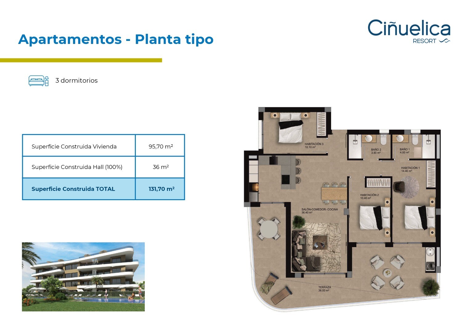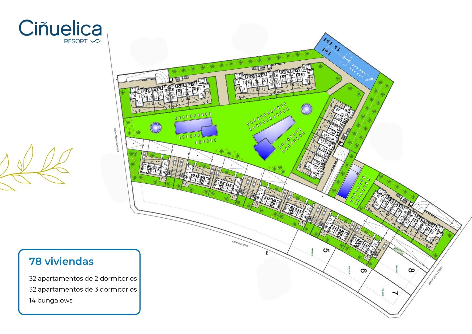 „La Cinuelica Resort“ yra rezidencija, kurią sudaro 4 daugiabučiai, kuriuose iš viso yra 32 2 miegamųjų apartamentai, 32 3 miegamųjų apartamentai ir 14 vasarnamių su 3 miegamaisiais. Butuose yra požeminė parkavimo vieta ir sandėliukas, virtuvės buitinė technika (šaldytuvo-šaldiklio derinys, keraminė kaitlentė, orkaitė, mikrobangų krosnelė, indaplov...ė, skalbimo mašina ir gartraukis), elektrinės žaliuzės, aeroterminio vandens boileris, išankstinis oro kondicionierius. ortakiai ir stogo soliariumams išankstinis lauko virtuvės ir sūkurinės vonios įrengimas. Bendrosiose patalpose yra sutvarkyti sodai su 3 baseinais ir 2 šildomomis sūkurinėmis voniomis, lauko treniruoklių zona ir žaidimų aikštelė. Rezidencija yra 1000 m nuo Punta Prima paplūdimio ir 500 m nuo prekybos centrų, kuriuose yra prekybos centrai, barai, restoranai, bankomatai, parduotuvės ir kt.
