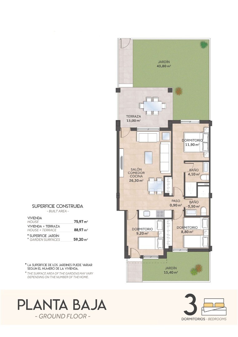 Komplekse yra didelis, maždaug 1735 m² ploto sodas su natūralia žole, baseinas su SPA ir vaikų zona. Taip pat yra papildomų sodų su palmėmis ir augalais. Visa tai daro šią vietą idealia vieta mėgautis saule su visa šeima ištisus metus.