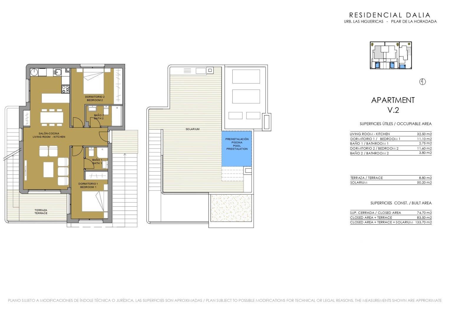 Soliariumas 50m2. Nedidelis 4 butų sklypas 100 m nuo Playa de las Higuericas paplūdimio. 2 butai pirmame aukšte su sodu ir 2 butai pirmame aukšte su terasa ant stogo. Abiejuose butuose yra galimybė pasirinktinai įrengti baseiną. Alikantės oro uostas pasiekiamas per 50 minučių, o Covera oro uostas – per 35 minutes.