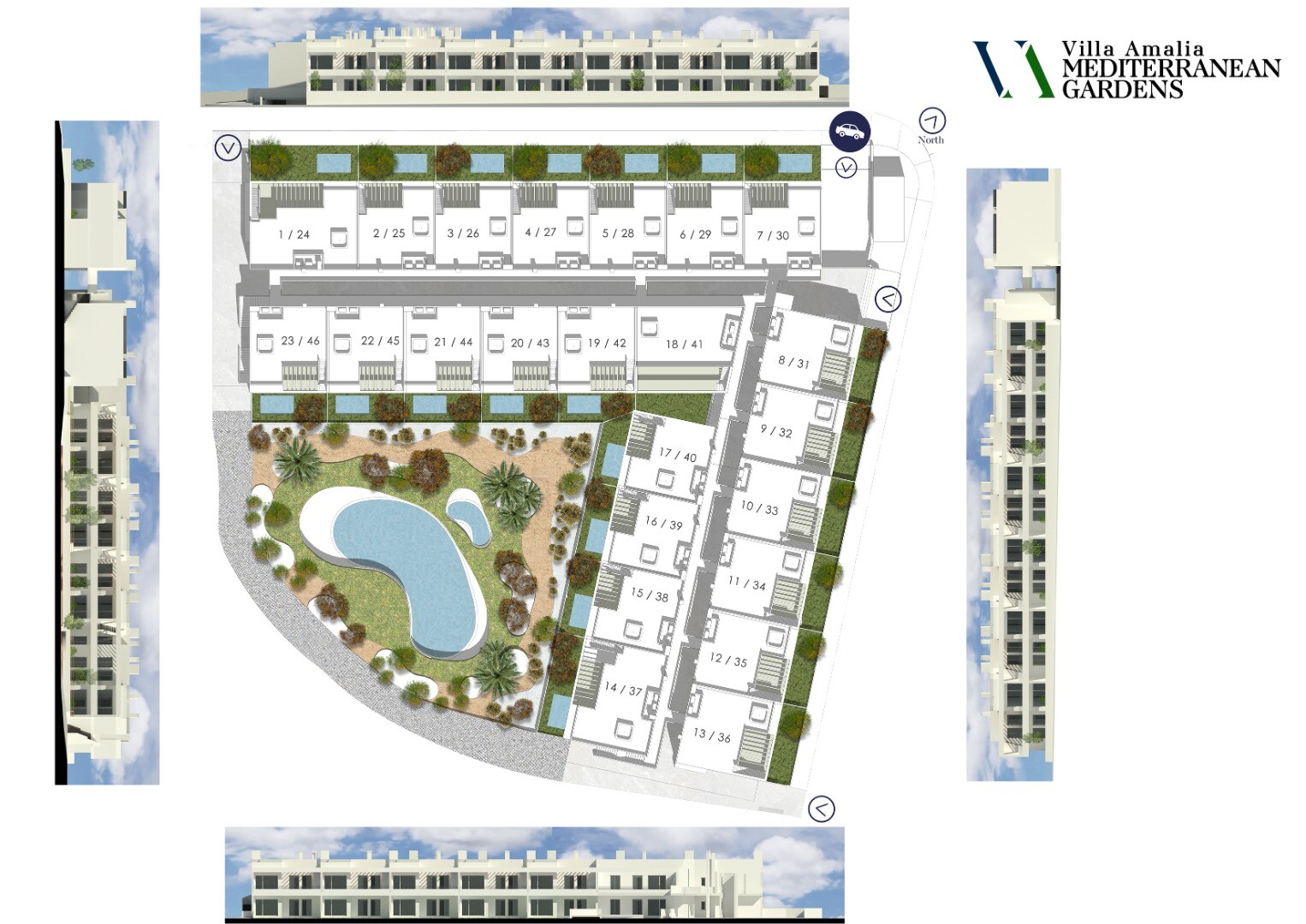 Erdvūs apartamentai su sodu pirmame aukšte ir soliariumu ant stogo antrame aukšte. Visuose apartamentuose yra pilnai veikianti oro kondicionavimo sistema karštam ir šaltam orui, vonios kambariai su dušo sienelėmis ir šildomomis grindimis bei požeminė automobilių stovėjimo aikštelė. Pasirinktinai automobilių stovėjimo aikštelėse gali būti įrengtos e...lektromobilių įkrovimo stotelės. Pėsčiomis pasiekiami visi patogumai. Prekybos centras „Aldi“ yra vos už 300 metrų. Torrevieja prieplauka yra vos už 3,5 km nuo šios rezidencijos, kurioje galėsite mėgautis įvairia veikla, pavyzdžiui, išsinuomoti motorinę valtį, vandens motociklus, sportinę žvejybą, barus ir restoraną, kurio uoste yra garsiausias Niki paplūdimio klubas.