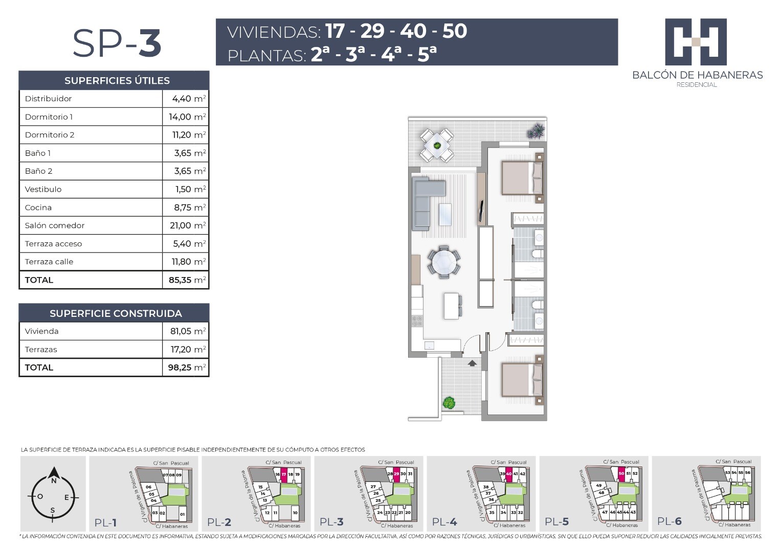 Balcón de Habaneras yra išskirtinis kompleksas, esantis pagrindinėje Habaneras gatvėje, Torrevieja mieste. Privilegijuota vieta, 300 metrų pėsčiomis nuo kai kurių geriausių paplūdimių ir netoli visų patogumų: restoranų, kavinių, prekybos centrų ir Habaneras prekybos centro. Vos 5 minutės pėsčiomis iki autobusų stoties ir Torrevieja centro. Tai unik...ali ir neprilygstama vieta, todėl tai yra viena geriausių vietų gyventi ar investuoti su ateities vizija, nes Habaneras yra viena iš pagrindinių gatvių, jungiančių Torevjejos miesto centrą su paplūdimiais. Šis prospektas taps pėsčiųjų, o tai reiškia, kad galėsite vaikščioti per visą Torrevieja pakrantę, kvėpuoti grynu oru. Dėl visų šių priežasčių „Balcón de Habaneras“ kompleksas yra ideali vieta gyventi ištisus metus, mėgautis paplūdimių ramybe ir tuo pačiu visais patogumais, kuriuos siūlo puikus Torrevieja miestas. „Balcón de Habaneras“ sudaro 56 apartamentai su 1, 2 ir 3 miegamaisiais su 2 vonios kambariais ir platus įvairių tipų namų pasirinkimas, dviaukštės apartamentai, mansarda su soliariumais su didelėmis terasomis ir įspūdingais panoraminiais jūros vaizdais arba privačia terasa žemėje. žemės su tiesioginiu išėjimu į bendro naudojimo patalpas. Alikantės oro uostą galima pasiekti viešuoju transportu, iš autobusų stoties tiesiogiai nuvažiuosite iki oro uosto. Automobiliu apie 45 min.