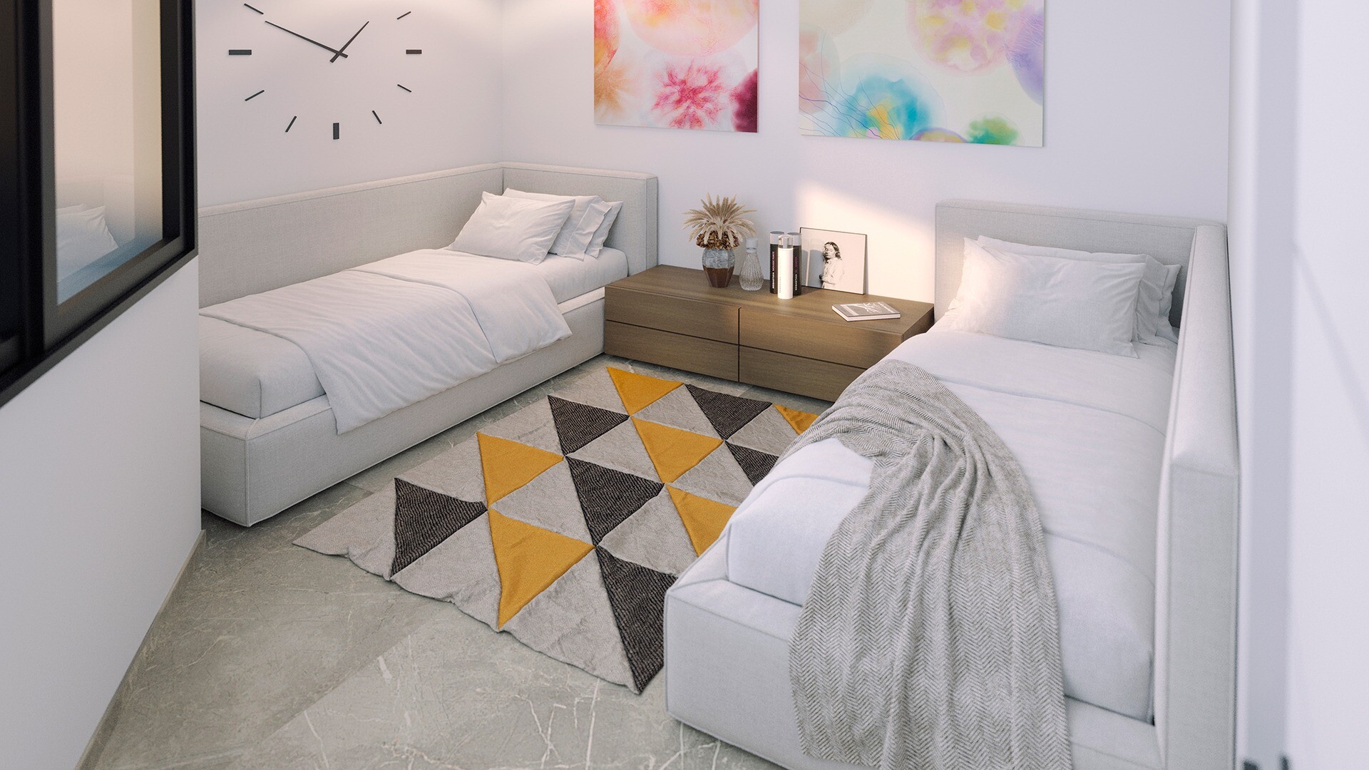Pastatas išsiskiria puikiomis bendromis erdvėmis: baseinas pirmame aukšte su vaikų zona, sporto salė ir pirtis, taip pat stogo terasa su poilsio zonomis, apsuptomis vešlios žalumos.