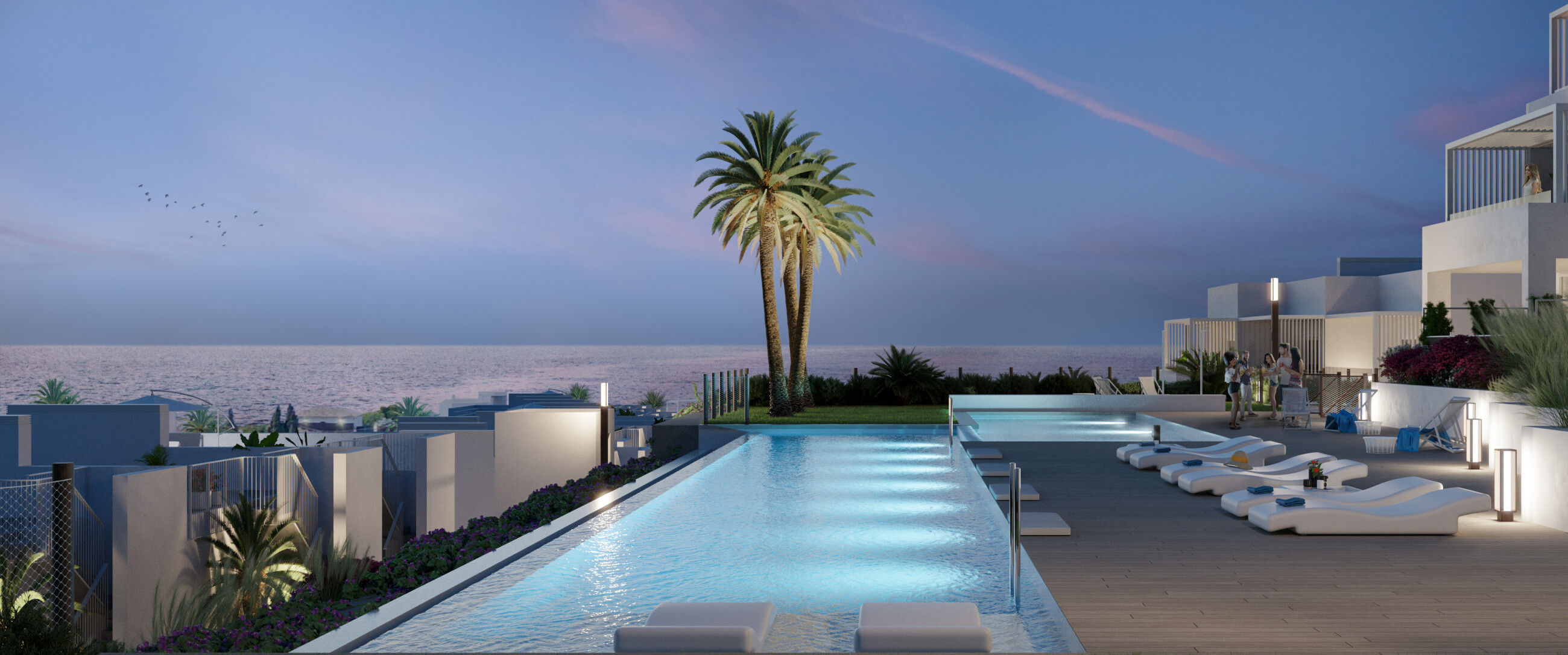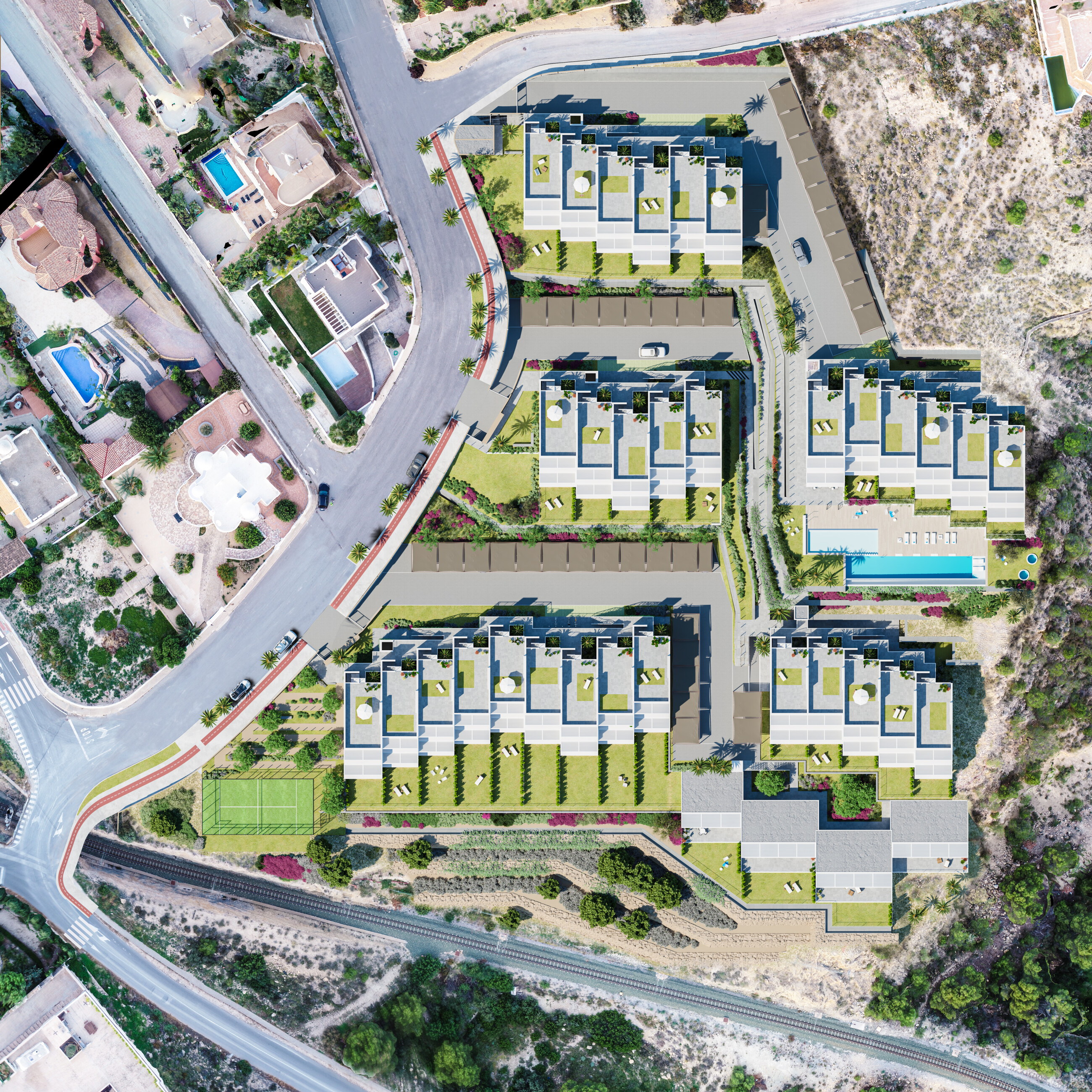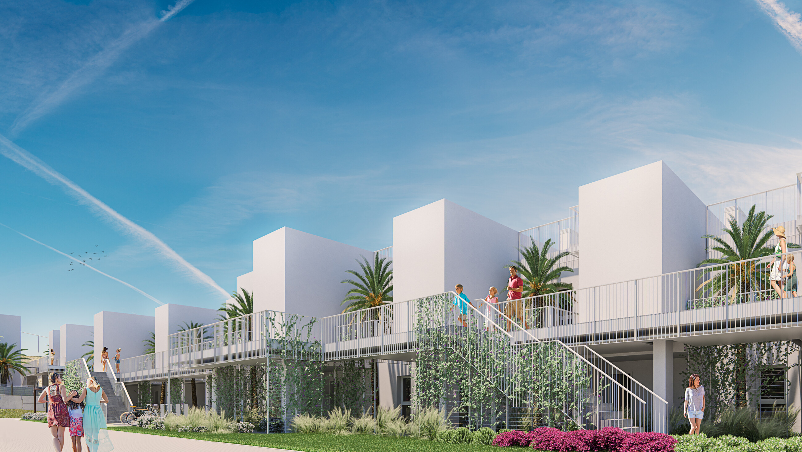 Namai su 2 ir 3 miegamaisiais su labai didelėmis terasomis, sodu arba soliariumu. Puikios savybės, tarp kurių, be kita ko, yra karštas/šaltas oro kondicionavimas per laidumo sistemą ir grindų šildymas vonios kambariuose, galimybė pritaikyti namus pagal individualius poreikius, pasirenkant įvairius apdailos variantus. Visiems namams priklauso parkav...imo vieta.
