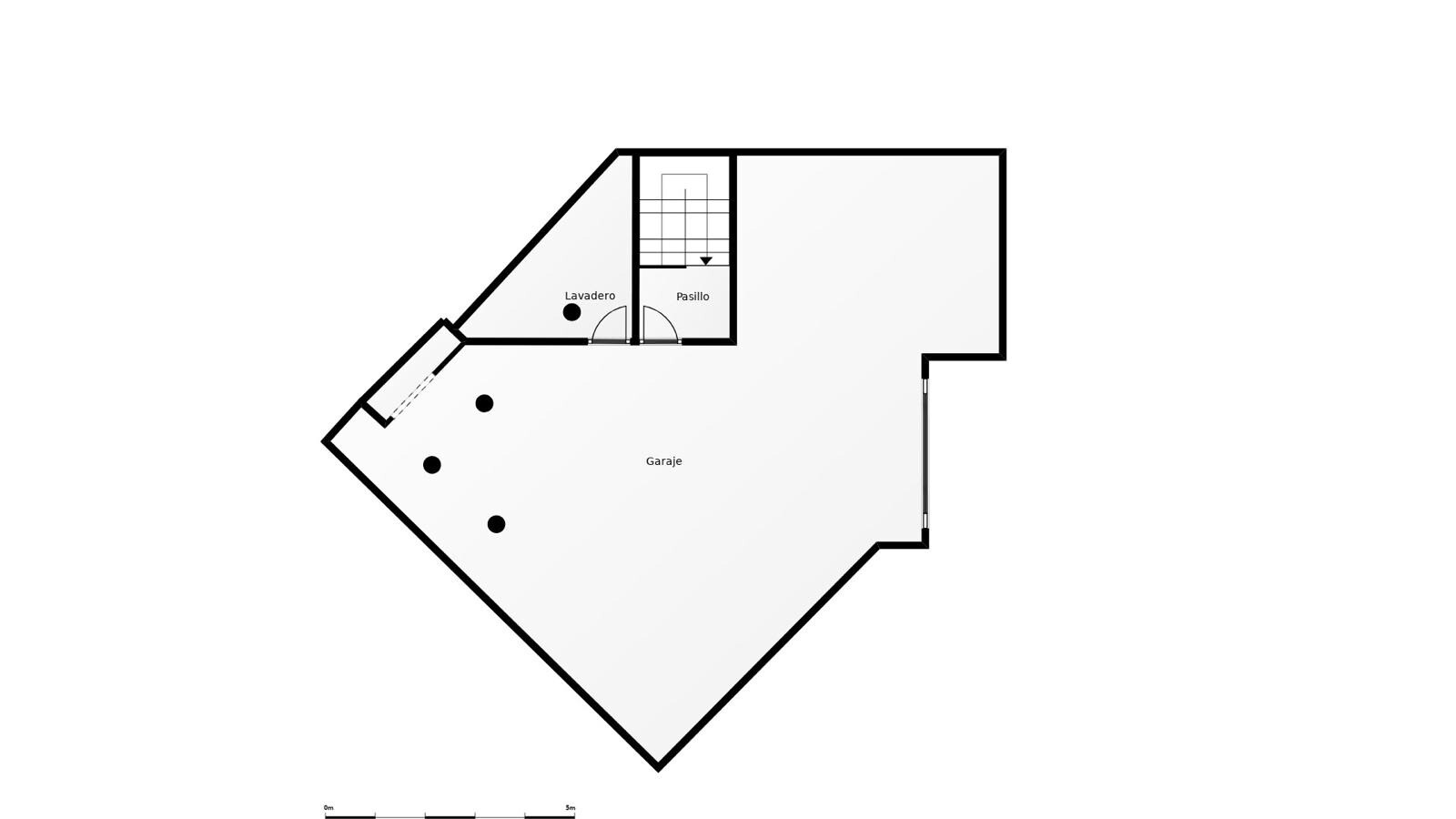 Didelis garažas, kuriame telpa mažiausiai penkios transporto priemonės, suteikia papildomos vertės ir suteikia galimybę jį paversti atskiru svečių apartamentu arba darbuotojų apgyvendinimu.