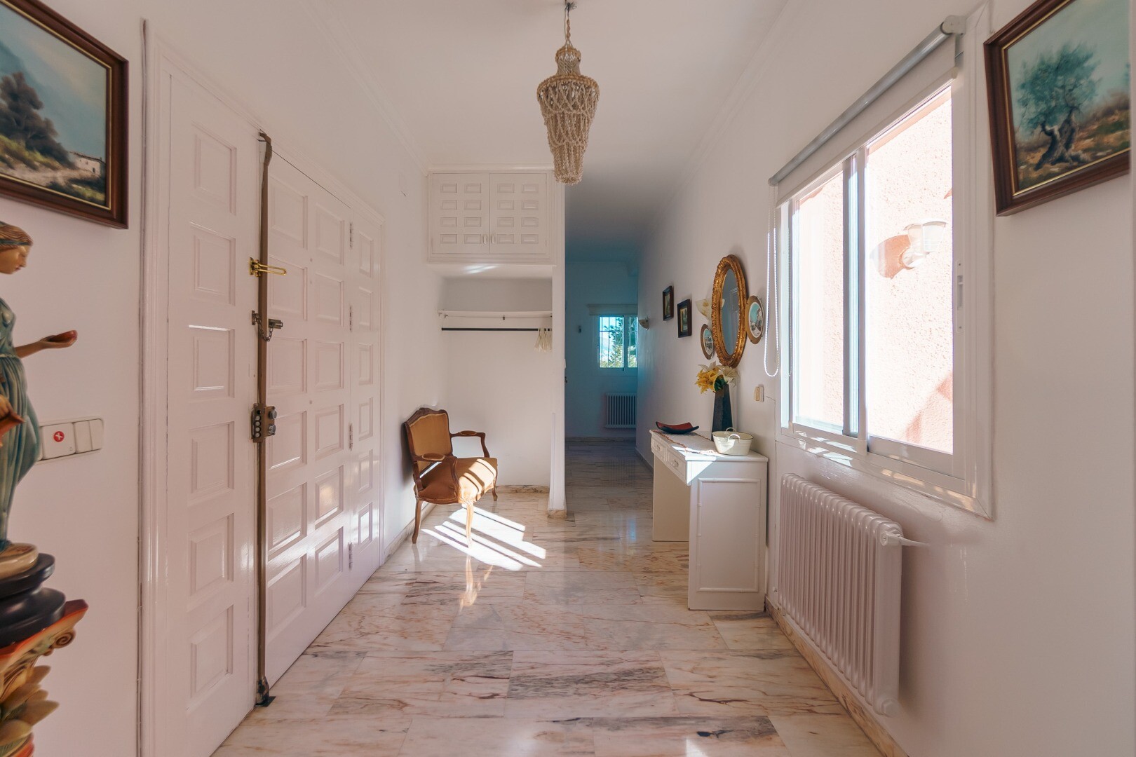 Pagrindinis namas yra vieno aukšto ir jame yra du erdvūs miegamieji, abu su vonios kambariais, taip pat svečių tualetas. Jame taip pat yra šviesi svetainė-valgomasis, atskira virtuvė ir biuras, kurį galima lengvai paversti trečiu miegamuoju. Name yra garažas su skalbykla, kelios sandėliavimo patalpos ir maloni vidinė terasa. Be to, yra erdvus sodas..., turintis didelį potencialą paversti jį gražia lauko gyvenamąja erdve.