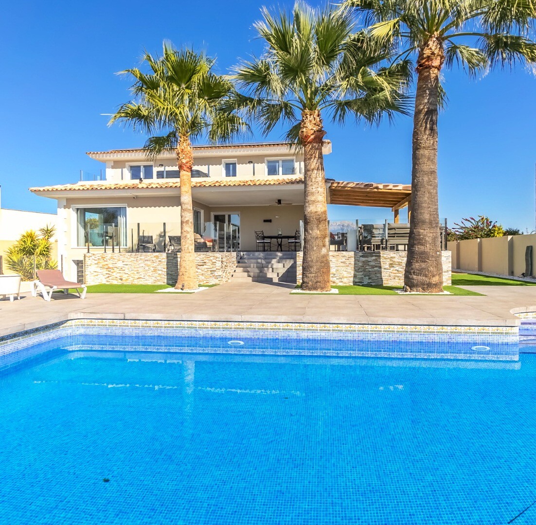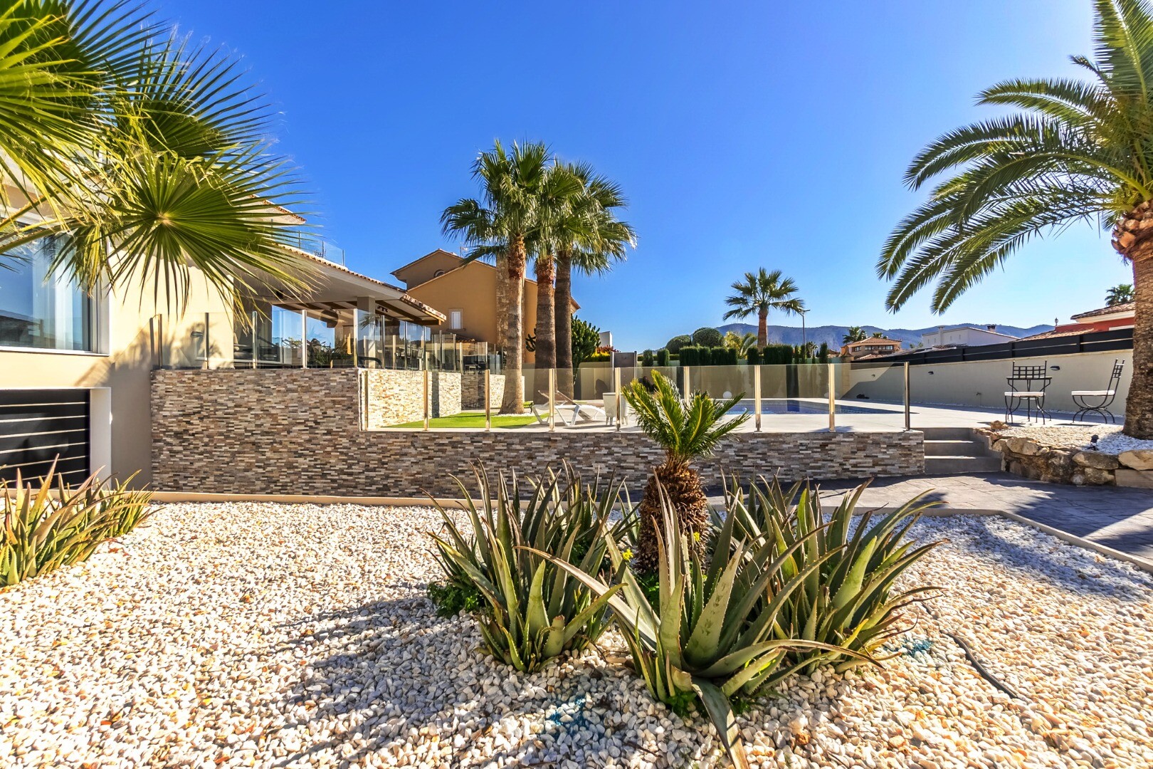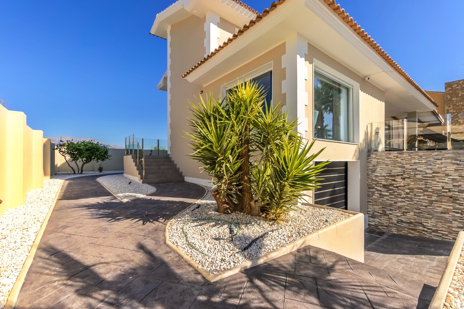 Visiškai renovuota 2023 m., ši moderni 350 m² ploto vila stovi privačiame 1250 m² ploto sklype ramiame gyvenamajame rajone, vos už 10 minučių kelio nuo paplūdimio ir 15 minučių kelio nuo Benidormo. Parduodama su visais baldais ir paruošta įsikelti.
