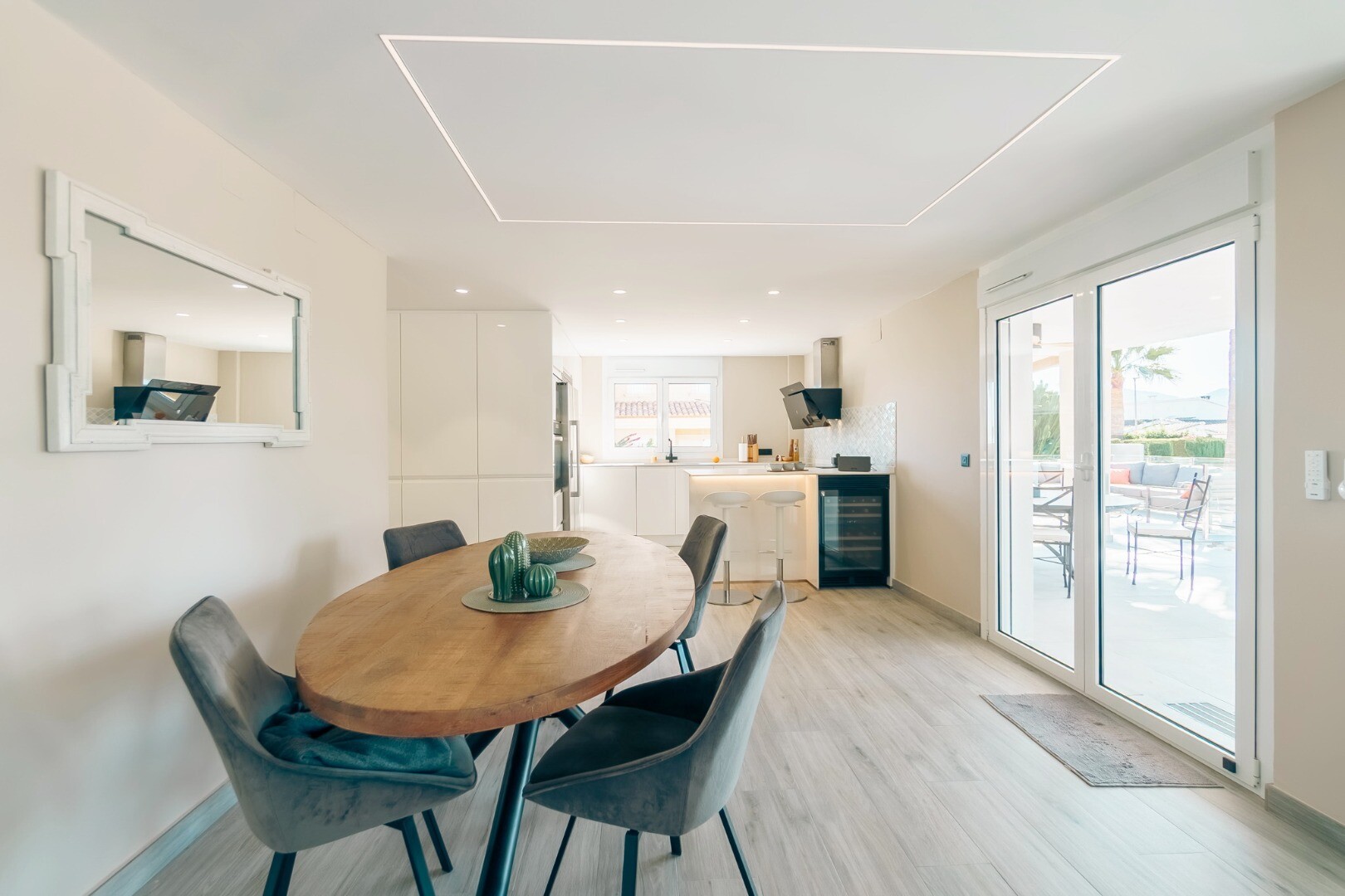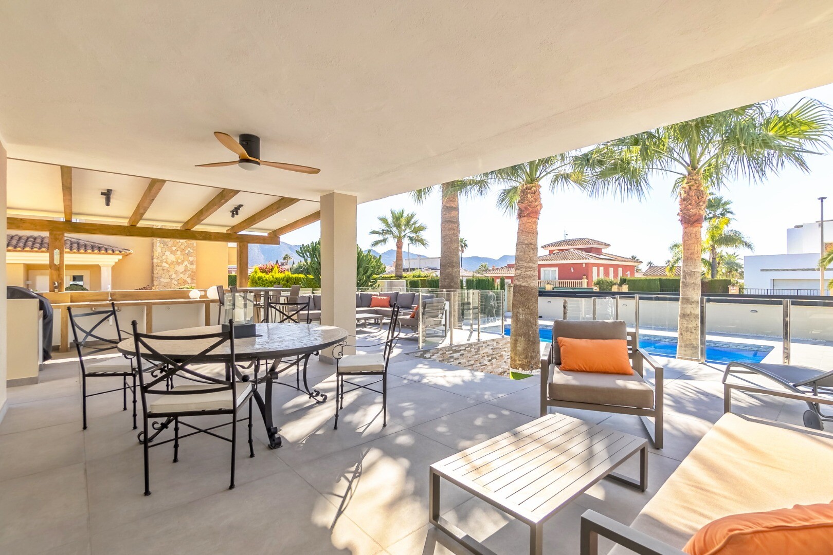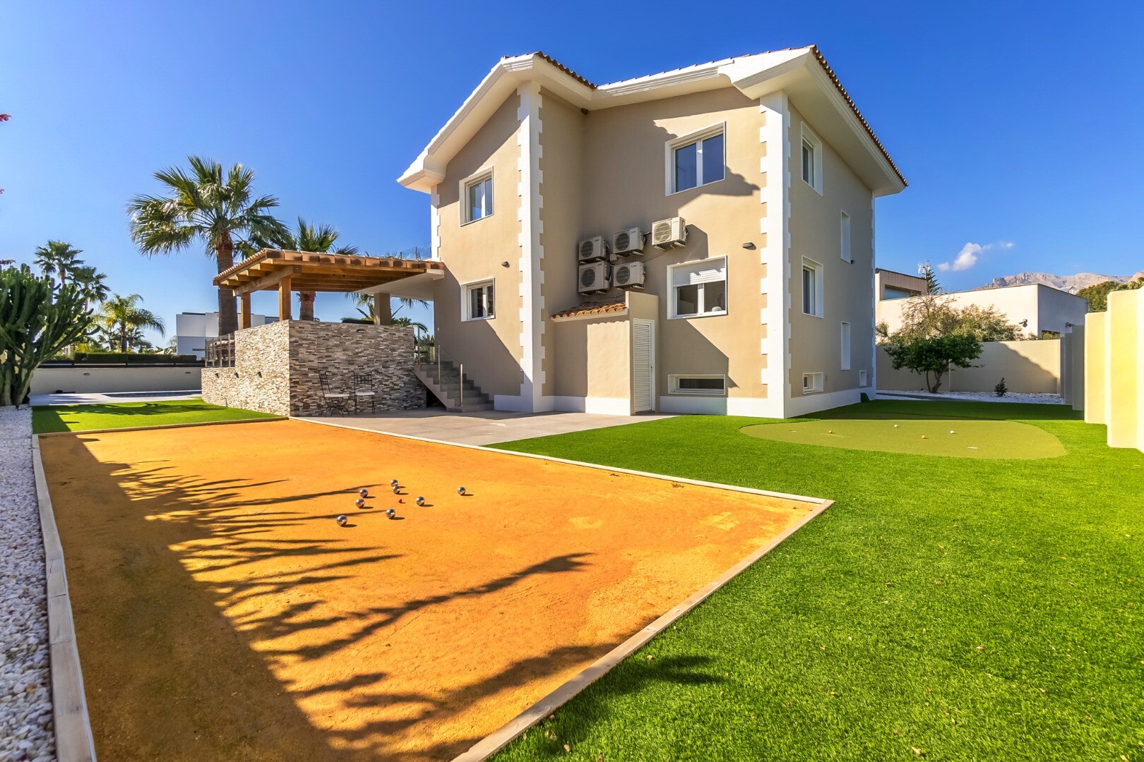 Visiškai renovuota 2023 m., ši moderni 350 m² ploto vila stovi privačiame 1250 m² ploto sklype ramiame gyvenamajame rajone, vos už 10 minučių kelio nuo paplūdimio ir 15 minučių kelio nuo Benidormo. Parduodama su visais baldais ir paruošta įsikelti.