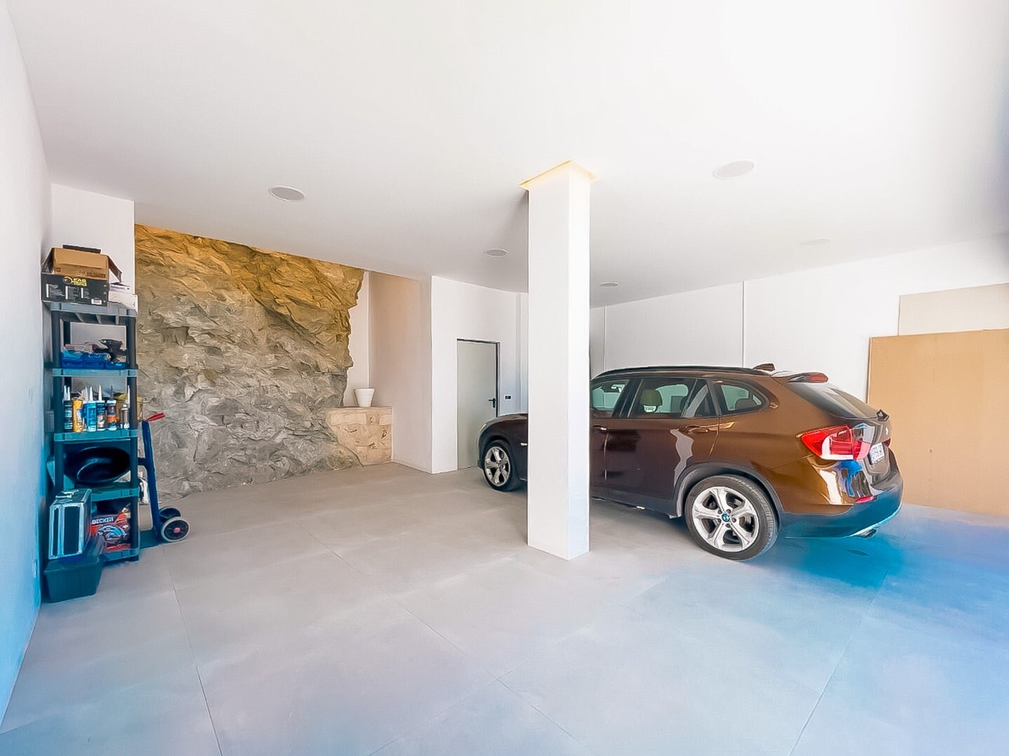 Pagrindiniame gyvenamajame aukšte yra erdvi atviro plano priimamoji zona, kurioje svetainė, valgomasis ir pilnai įrengta dizainerių virtuvė lengvai susijungia per stiklinius langus nuo grindų iki lubų, įrėminančius nepertraukiamus jūros ir kalnų vaizdus. Interjero architektūra pabrėžia švarias linijas, rafinuotas medžiagas ir rafinuotą Viduržemio jūros regiono modernią estetiką.