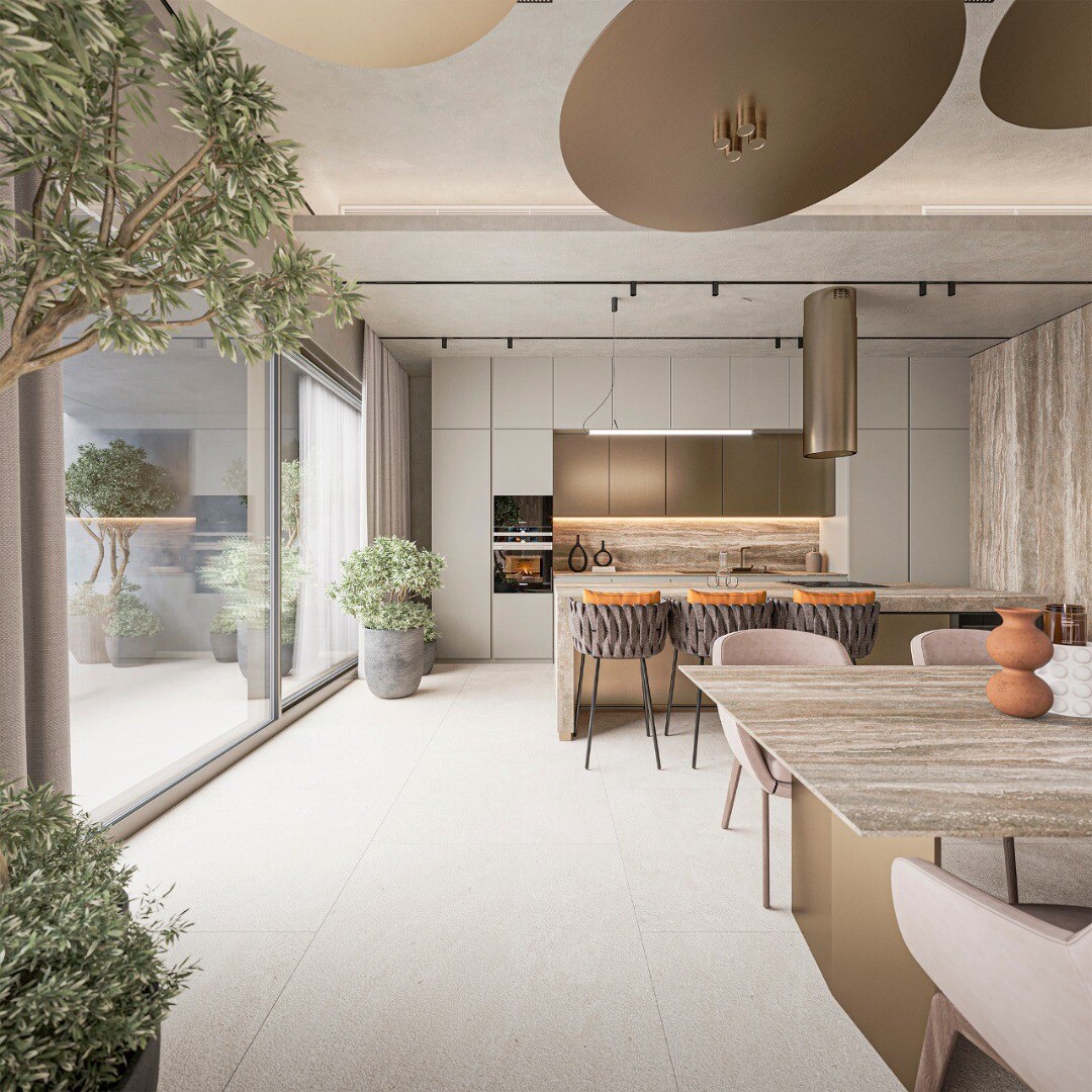 Lauko erdvės siūlo tikrą prabangą: terasos, poilsio zonos ir sodai supa įspūdingą infinity baseiną. Kiekvienas saulėlydis tampa ypatinga patirtimi.