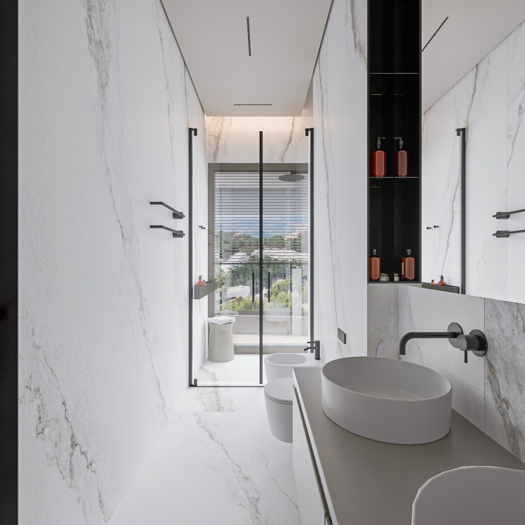 Vila suprojektuota ieškantiems išskirtinumo ir išdėstyta per tris eleganti...škus aukštus. Moderni architektūra maksimaliai išnaudoja natūralią šviesą ir paverčia kraštovaizdį gyvu meno kūriniu. Atviro plano erdvė sujungia svetainę, valgomąjį ir aukštos klasės virtuvę.