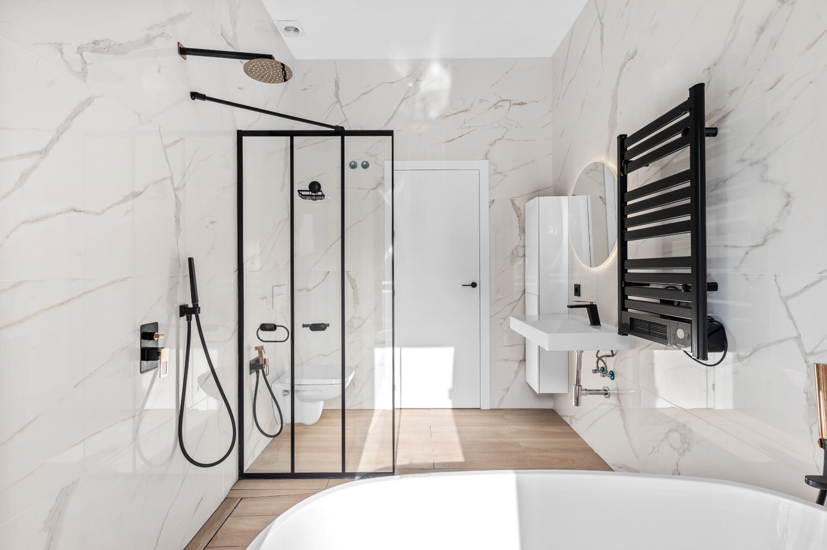 Lauko erdvėse privatus sodas kviečia mėgautis gyvenimu gryname ore – įrengta kepsninės zona, stilingas sūraus vandens baseinas ir išskirtinė sauna sukuria tikrą poilsio ir atsipalaidavimo atmosferą. Visa tai įsikūrę ramioje ir privačioje aplinkoje, užtikrinančioje aukštą gyvenimo kokybę.