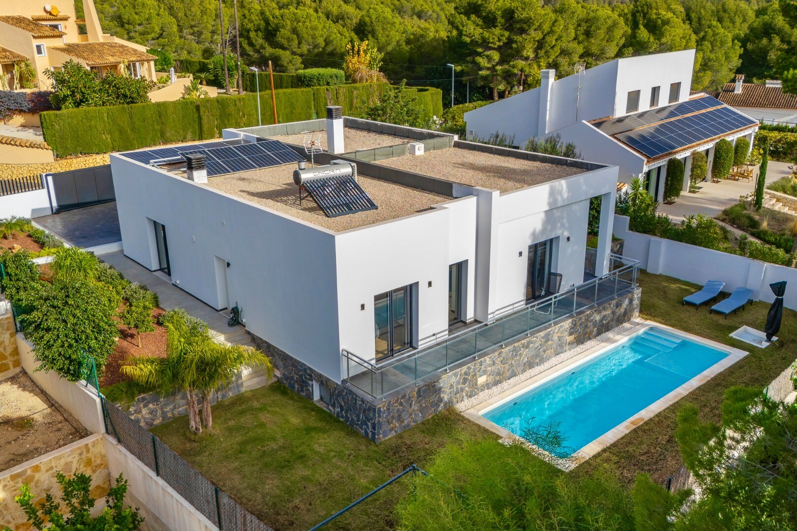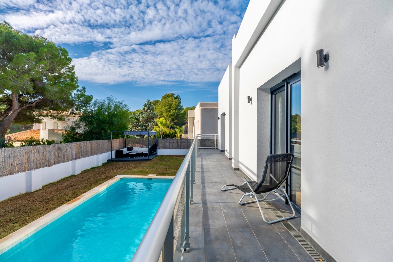 Aukštos kokybės apdaila ir dėmesys detalėms paverčia šią vilą išskirtine galimybe įsigyti modernų, pilnai paruoštą gyvenimui namą vienoje geidžiamiausių Costa Blanca vietovių.