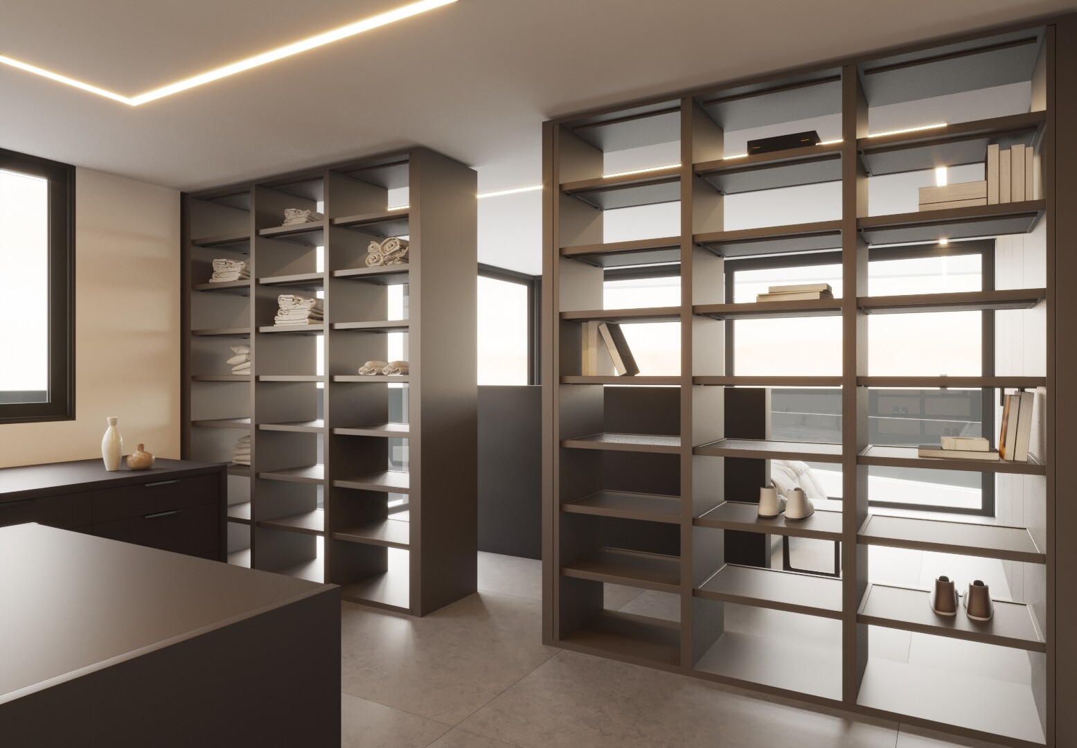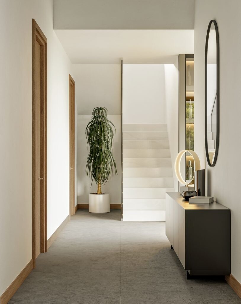 Namas yra 564 m2 pastatytas, paskirstytas pirmame aukšte, kuriame yra dvigubo aukščio holas, miegamasis su vonios kambariu, svetainė su valgomuoju ir 60 m2 įrengta virtuvė su ...išėjimu į terasą, kurioje yra baseinas ir tualetas. Pirmame aukšte yra 19 m2 miegamasis su atskiru vonios kambariu ir 55 m2 miegamasis su atskiru vonios kambariu (su dušu ir vonia) bei drabužine.