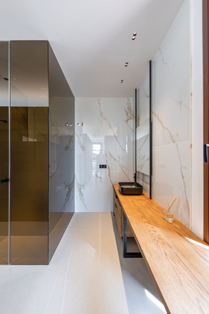 Architektūriniu požiūriu vila išsiskiria modernia estet...ika, švariomis linijomis ir aukštos kokybės medžiagomis, kur dideli langai nuo grindų iki lubų ne tik suteikia gausų natūralų apšvietimą, bet ir harmoningai sujungia išorinį kraštovaizdį su vidaus erdve.