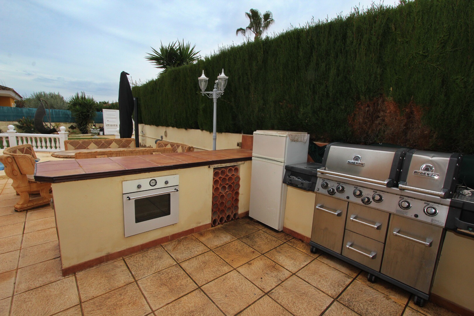 * Pilnai įrengta vasaros virtuvė su kepsnine, picos krosnimi, įprasta orkaite ir šaldytuvu
