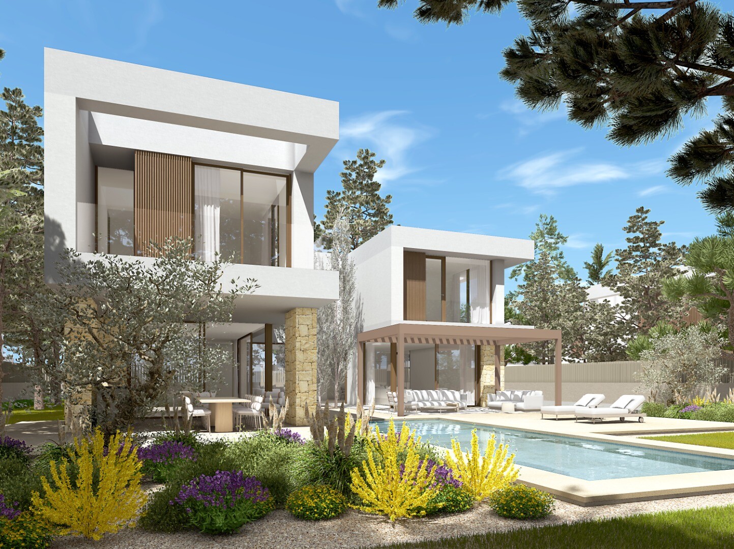 12 prabangių modernių šiuolaikinio stiliaus vilų, esančių vos 100 metrų atstumu nuo Las Rotas įlankų ir paplūdimių Denia mieste – bangų, švelniai skrodžiančių krantą, garsas girdisi iš kiekvienos iš 12 vilų!