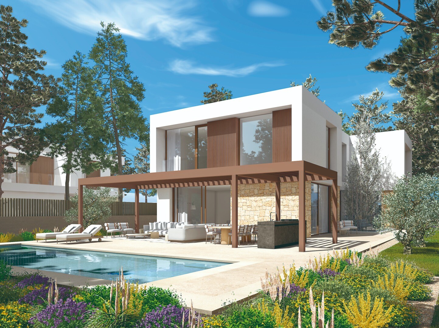 12 prabangių modernių šiuolaikinio stiliaus vilų, esančių vos 100 metrų atstumu nuo Las Rotas įlankų ir paplūdimių Denia mieste – bangų, švelniai skrodžiančių krantą, garsas girdisi iš kiekvienos iš 12 vilų!