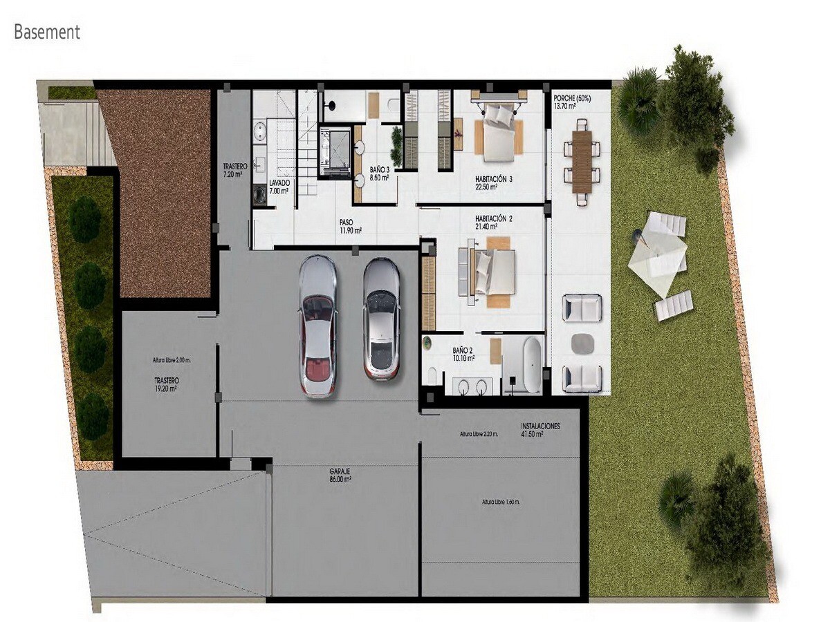 11 unikalių ir skirtingų vilų kompleksas su atskirais sklypais iki 622 m2, bendras užstatymo plotas iki 422 m2 ir privačiu baseinu.