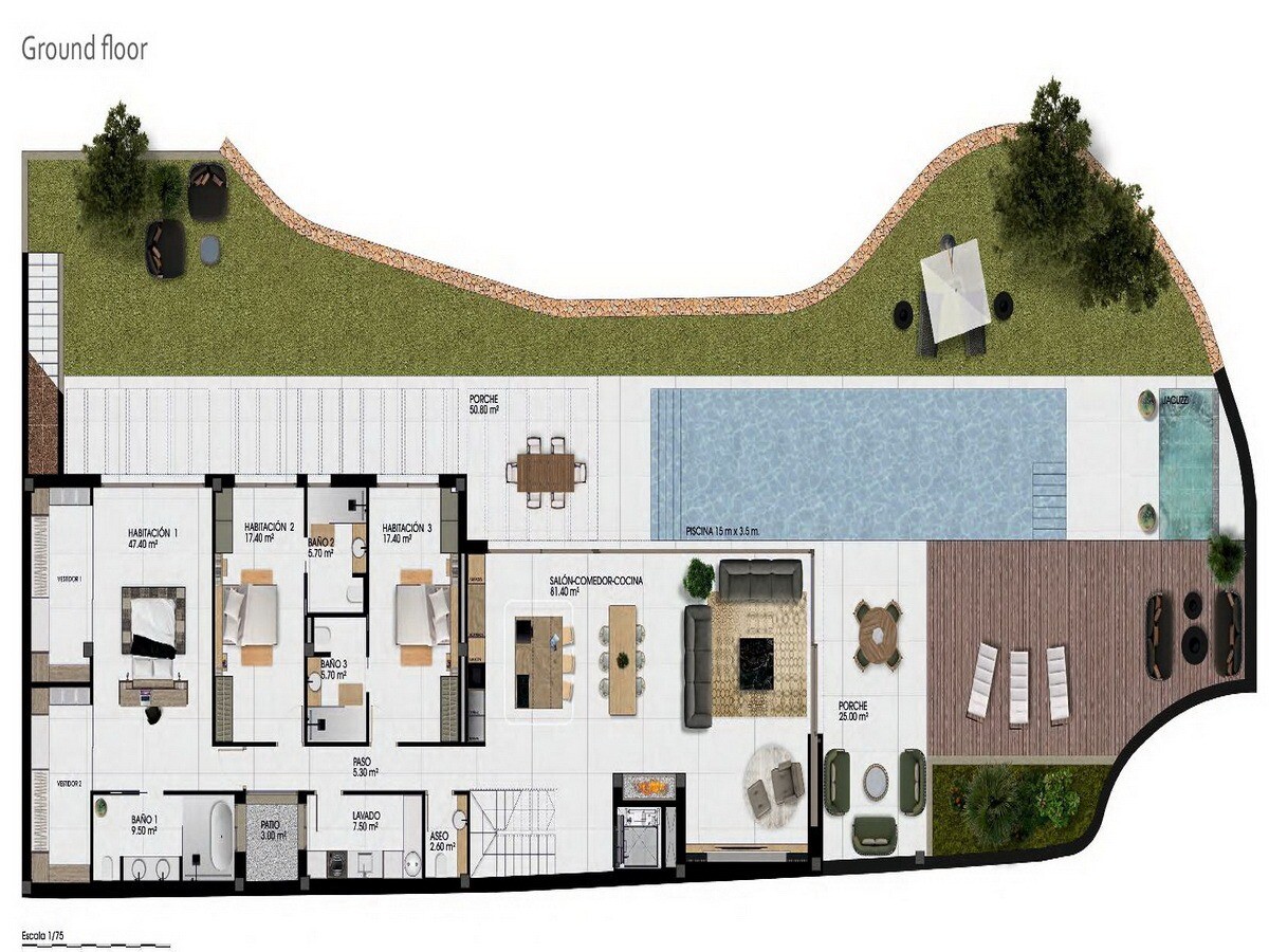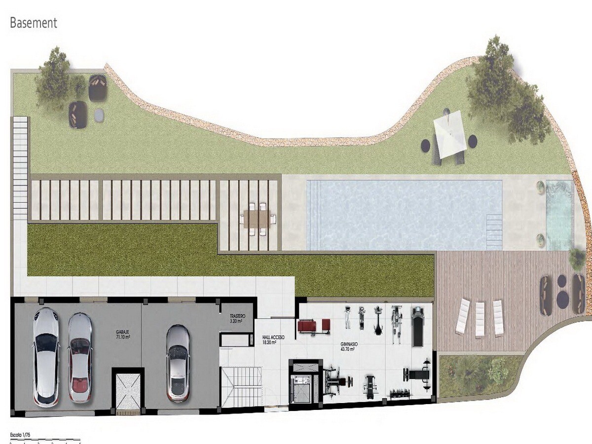 11 unikalių ir skirtingų vilų kompleksas su atskirais sklypais iki 622 m2, bendras užstatymo plotas iki 422 m2 ir privačiu baseinu.