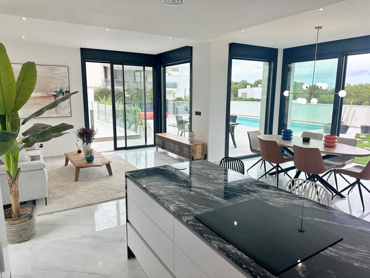Šiuolaikinės prabangios vilos itin paklausioje Sierra Cortina vietoje su vaizdu į jūrą. RAKTAS PARUOŠTA! su 4 miegamaisiais ir 4 vonios kambariais, didele terasa su baseinu, pilnai įrengta dizainerių virtuve. Vilose yra pilnas oro kondicionavimo įrengimas, LED apšvietimas viduje ir išorėje, sodo laistymo sistema ir daug daugiau.