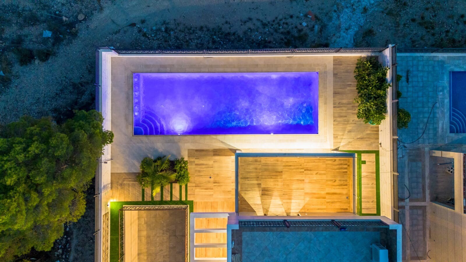 Jame yra didelė svetainė su amerikietiška virtuve su buitine technika, 21m2 dengta terasa, didelė atvira terasa ir 40m2 begalybės baseinas.